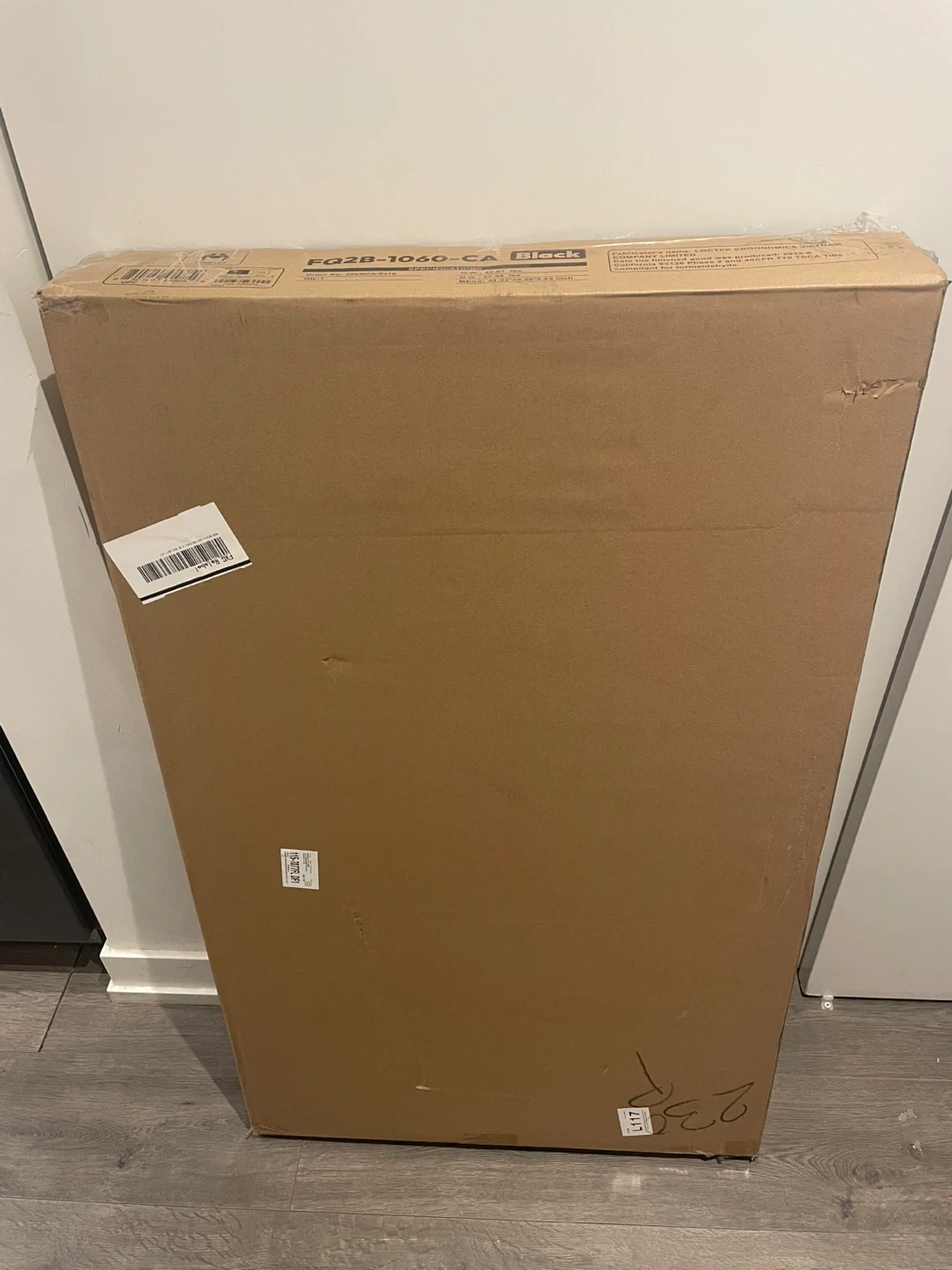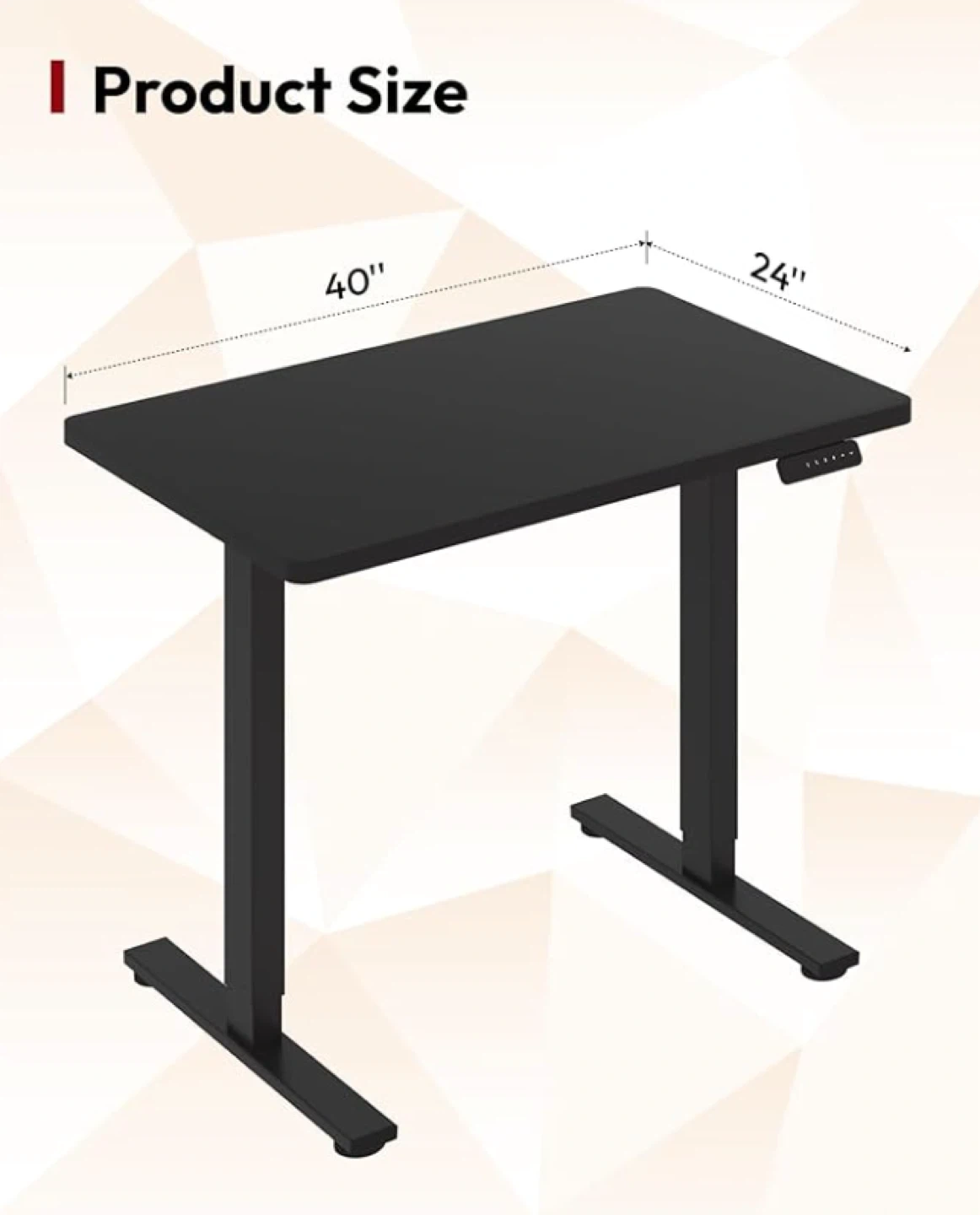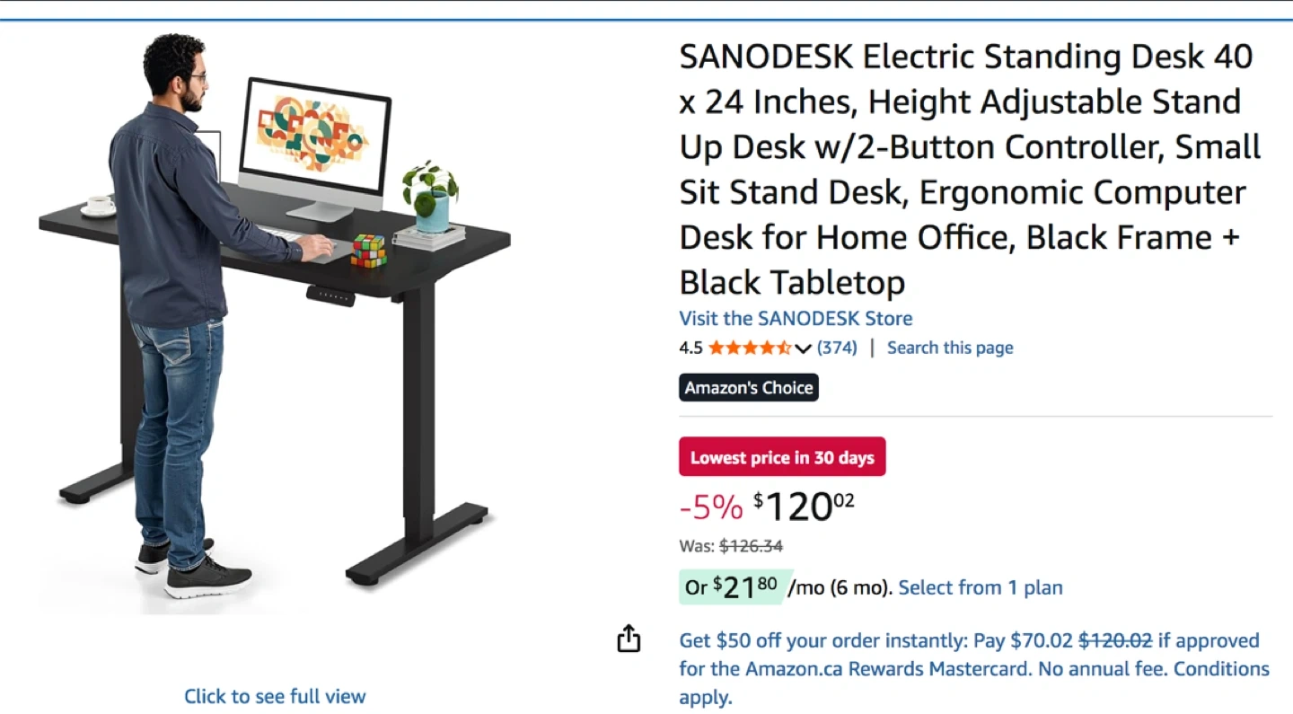 Electric standing desk 40 x 24 inches. The brand is SANODESK, in a black color. I ordered it on Amazon but no longer need it. It’s in its box, unopen, still taped.