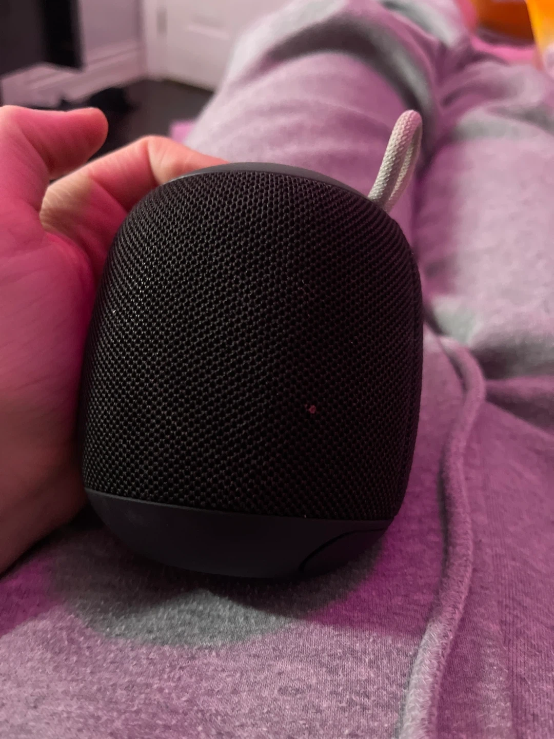 Ultimate Ears Wonderboom 3 portable speaker. It's black and water-resistant. Great for outdoor use!