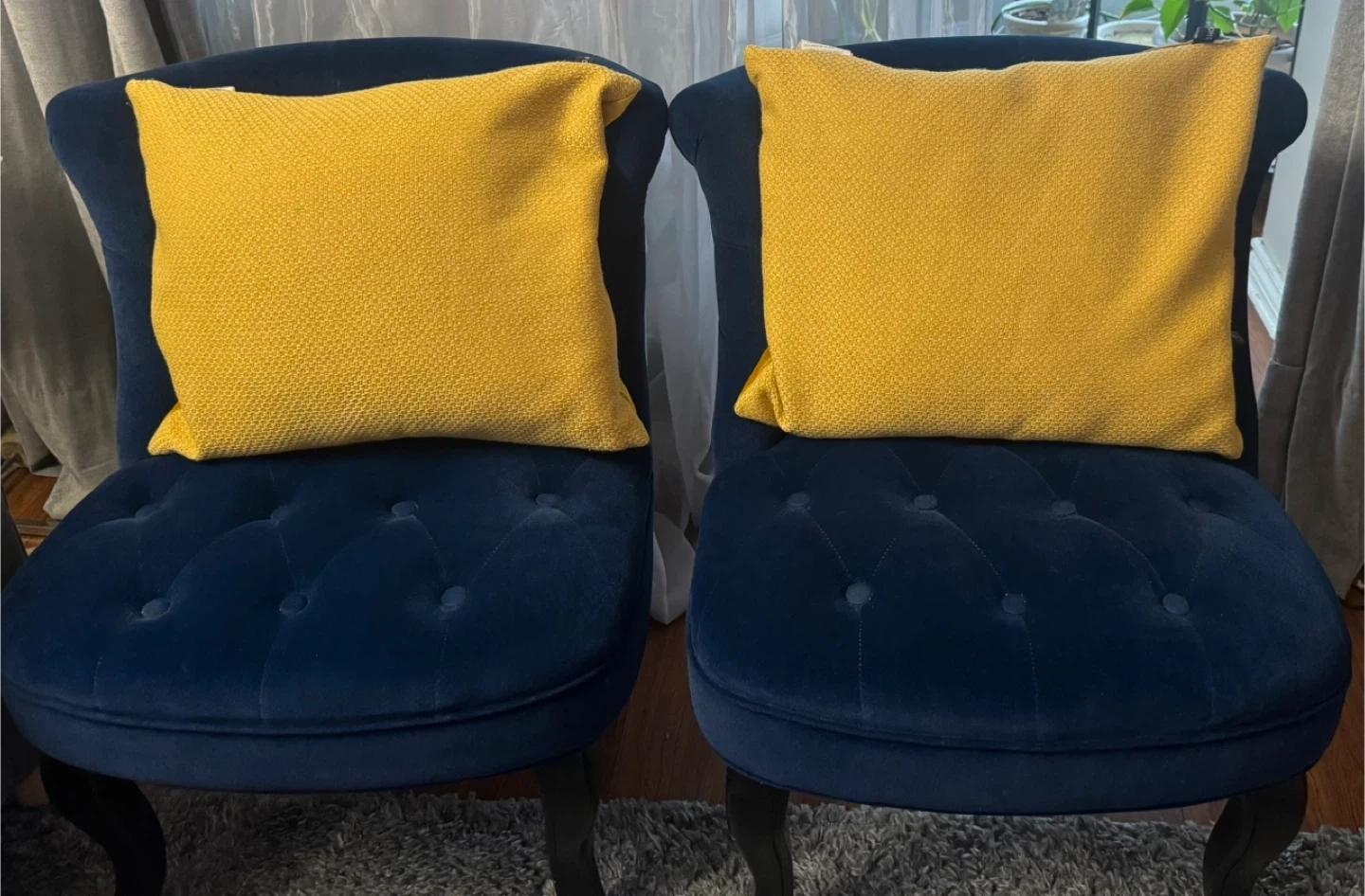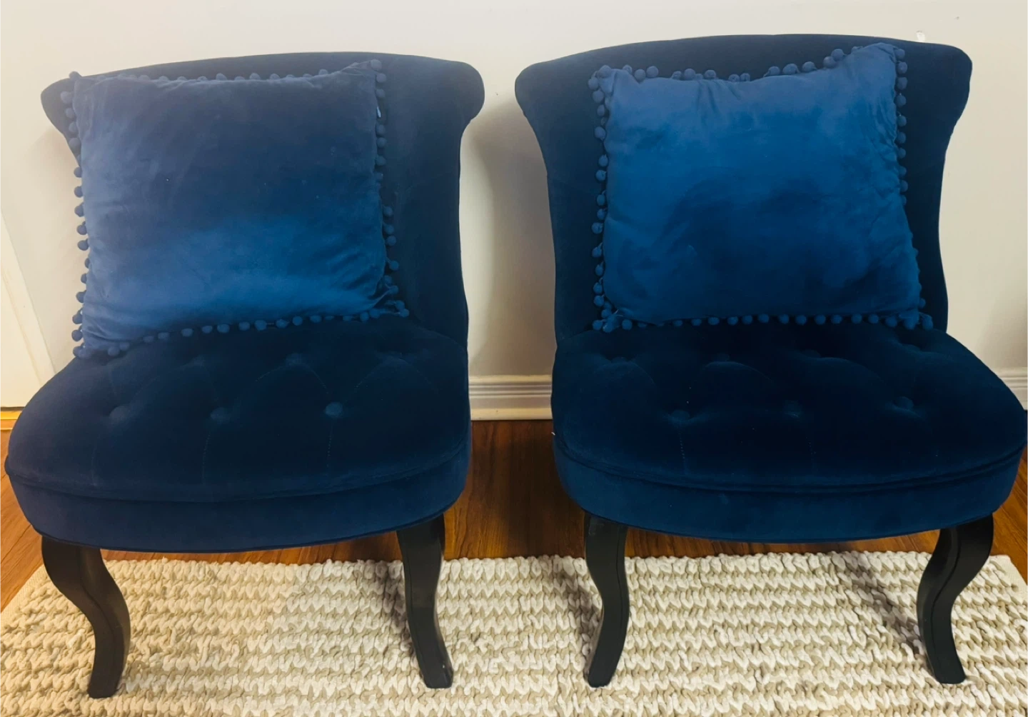 Set of 2 Blue Velvet Accent Chairs with free 2 velvet cushions