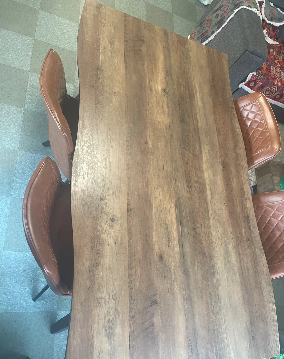 Chairs got scratches in the side due the table legs edge but other than that, they are in good condition .