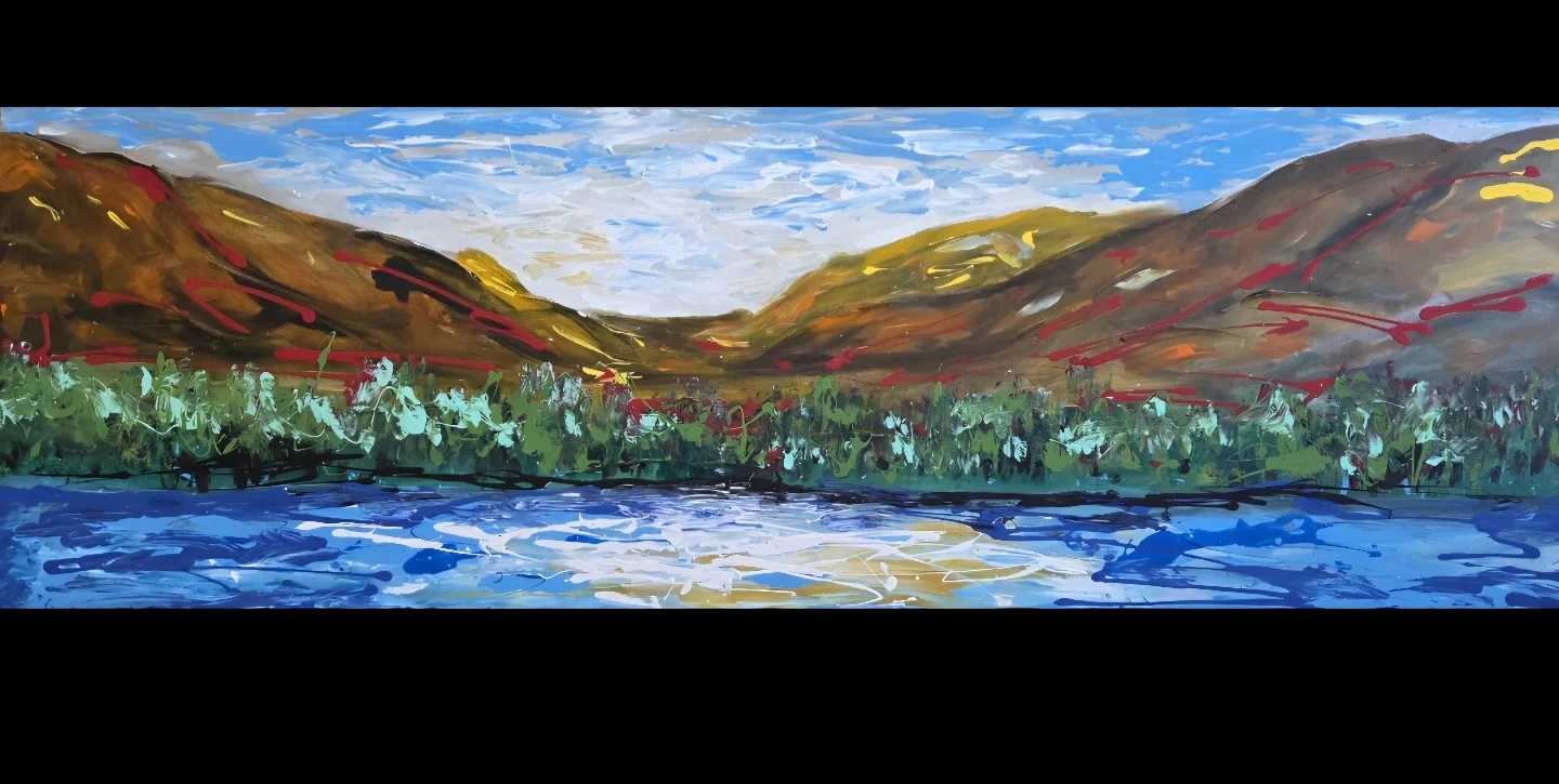 Huge original hand-painted painting by local artist Whistler B.C 60"x20 Acrylic on canvas with varnish protection Ready to hang to view more of my artwork go to my Instagram zkart2021 Custom order painting available Abstract modern cubist landscape cityscape flowers.