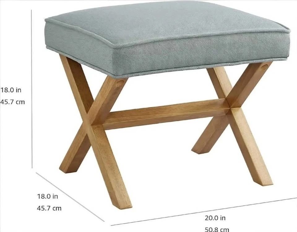 Add a touch of elegance to any room with this Threshold Blue Grey X-Leg Bench. This stylish and functional bench features a comfortable upholstered seat and a sturdy X-leg base. Its compact size makes it perfect for entryways, living rooms, or bedrooms. Brand: Threshold, Colour: Blue Grey, Leg Style: X-Leg, Dimensions: 18"(H) x 20"(W) x 18"(D), Maximum Weight: 250 lbs.