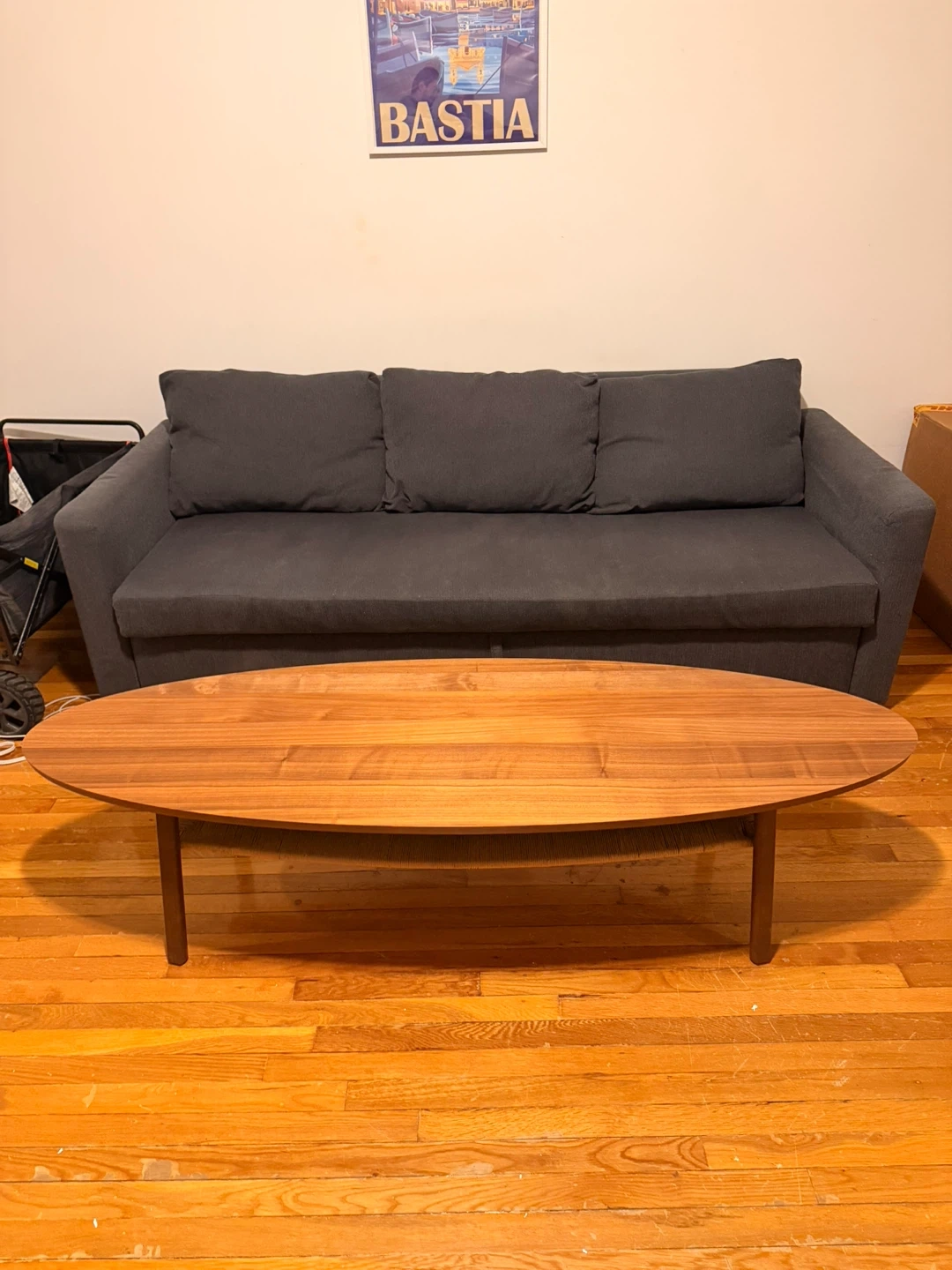 This is a dark gray sofa bed. It features a pull-out mattress for sleeping. Includes three matching throw pillows.