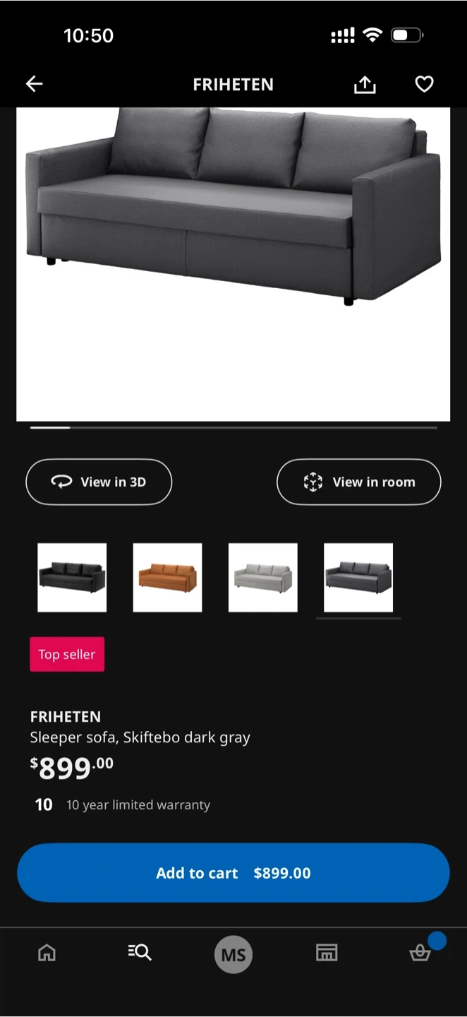 Ikea Friheten Dark Gray Sofa Bed with 3 Pillows
