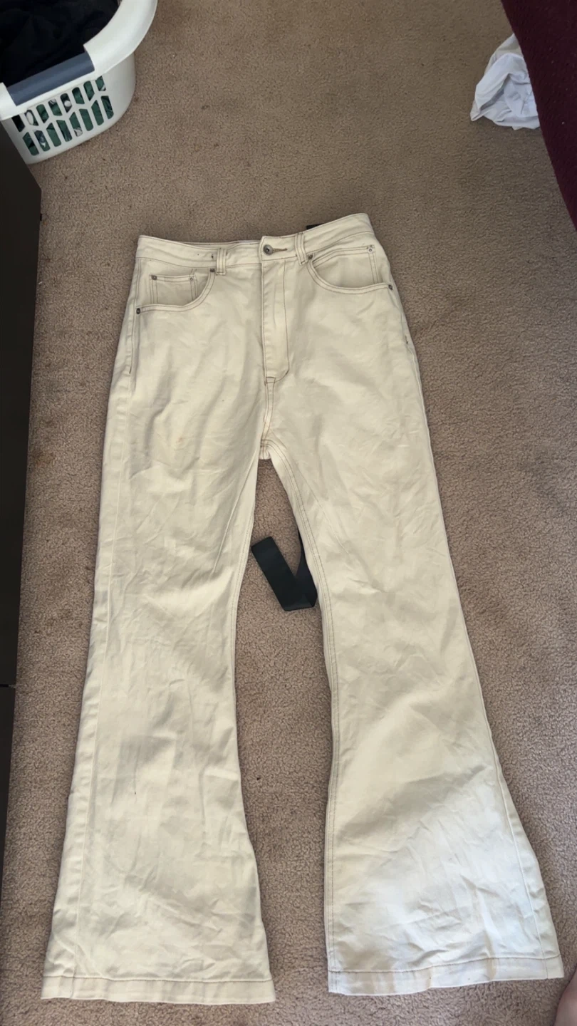 Buy & SellRick Owen JeansRick Owen Jeans$180Worn once Cream/off-white color with Tight stretch. Size W30 Good condition, clean and ready to wear.WHERE TO MEETCheck LocationView MapSELLERJaxsonMain100 reviews2 chats·0 favorites·30 viewsSEND CHAT TO SELLERHi Jaxson! I’m interested in your listing.Hi Jaxson! I’m interested in your listing.Get the Karrot app to chatSign In to chat