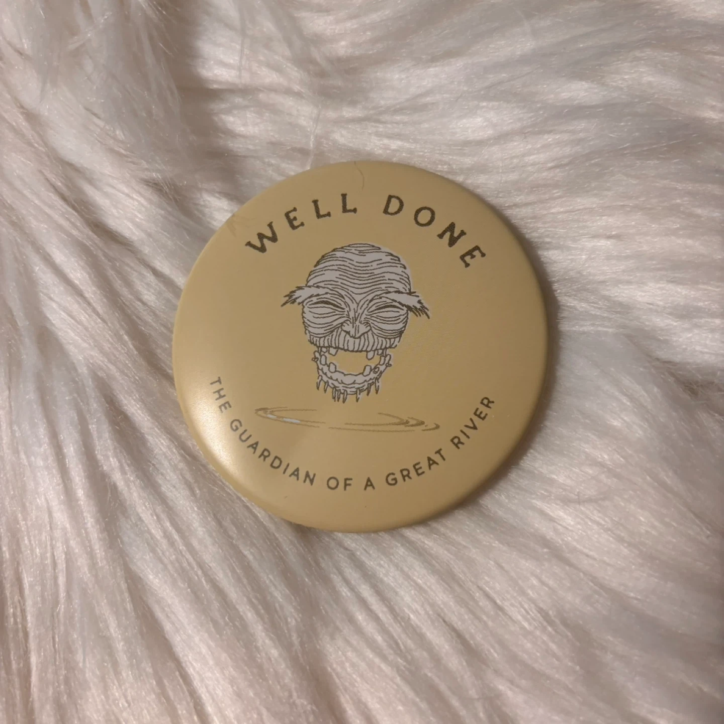 This is a Well Done badge from the Spirited Away collection. It features "The Guardian of a Great River" design. Great for fans of Studio Ghibli!