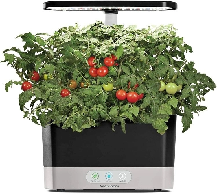 Includes Gourmet Herb Seed Kit (6-pod) with Genovese Basil, Curly Parsley, Dill, Thyme, Thai Basil, and Mint, plus a 3oz bottle of plant nutrients for a full season. Grow up to 6 plants at a time, up to 12" tall. Grows in water, no soil, no mess. Easy-to-use control panel reminds you when to add water and plant food. Features high-performance, full-spectrum 20-watt LED grow lights for rapid, natural growth. Enjoy fresh herbs and veggies year-round with this indoor garden system.