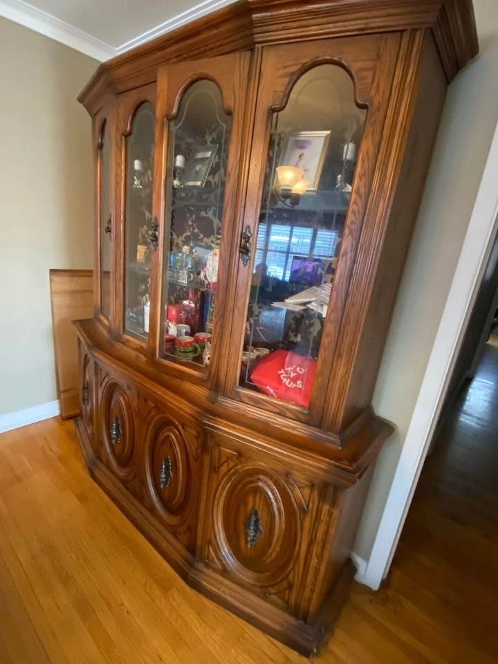 Old vintage solid wood hutch with tons of character. Sturdy, timeless piece with great storage. Some wear consistent with age.