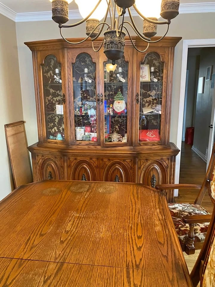 Old vintage solid wood hutch with tons of character. Sturdy, timeless piece with great storage. Some wear consistent with age.