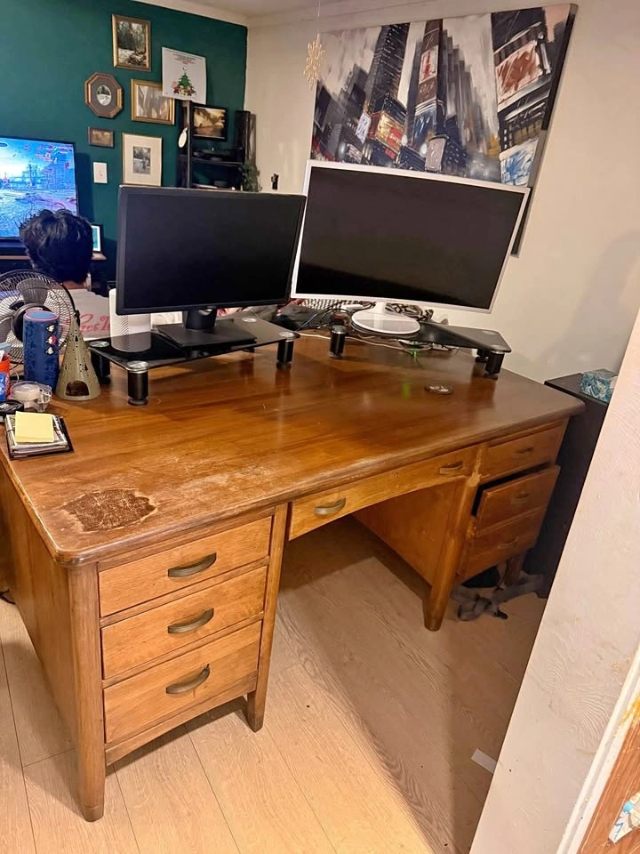 This is a super heavy, solid wood desk that has been passed down through the family. We are downsizing and need to pass it on to its new home. You must collect from Richmond. We would ideally like it out by Feb 1st, but can be flexible if needed.