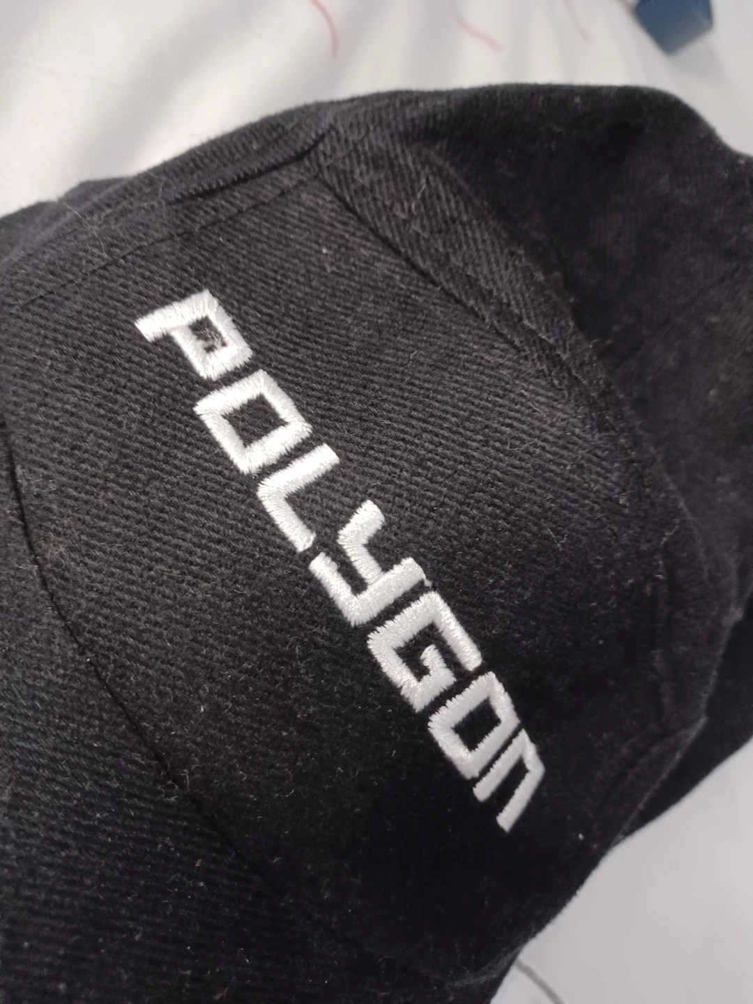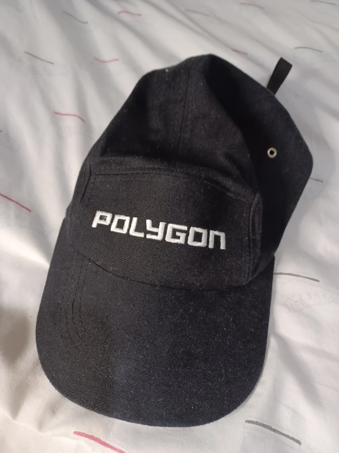 Black baseball cap with the "POLYGON" logo embroidered on the front. It's a simple, stylish cap for everyday wear. Made from durable fabric.