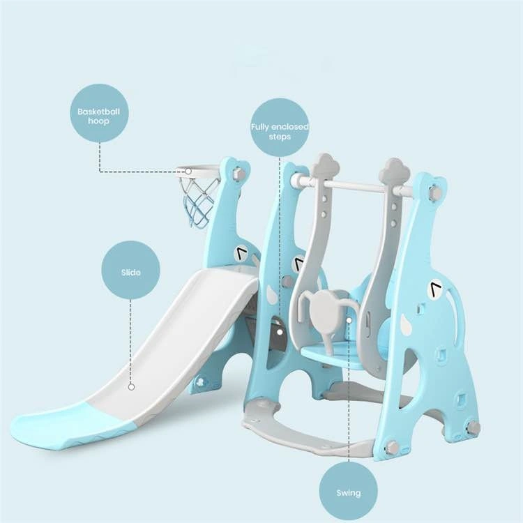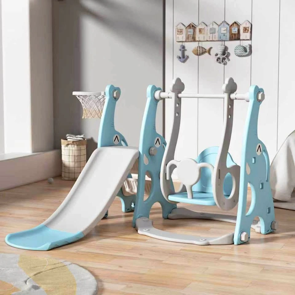 3-in-1 Slide and Swing Set with Climber & Basketball Hoop