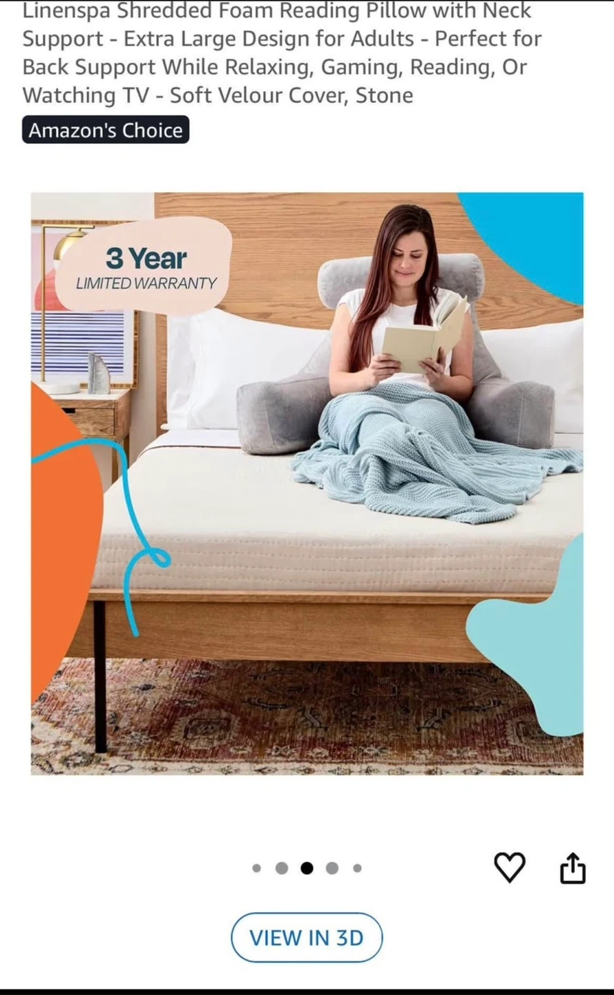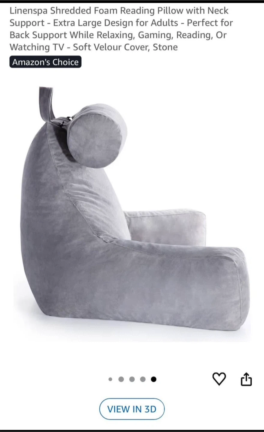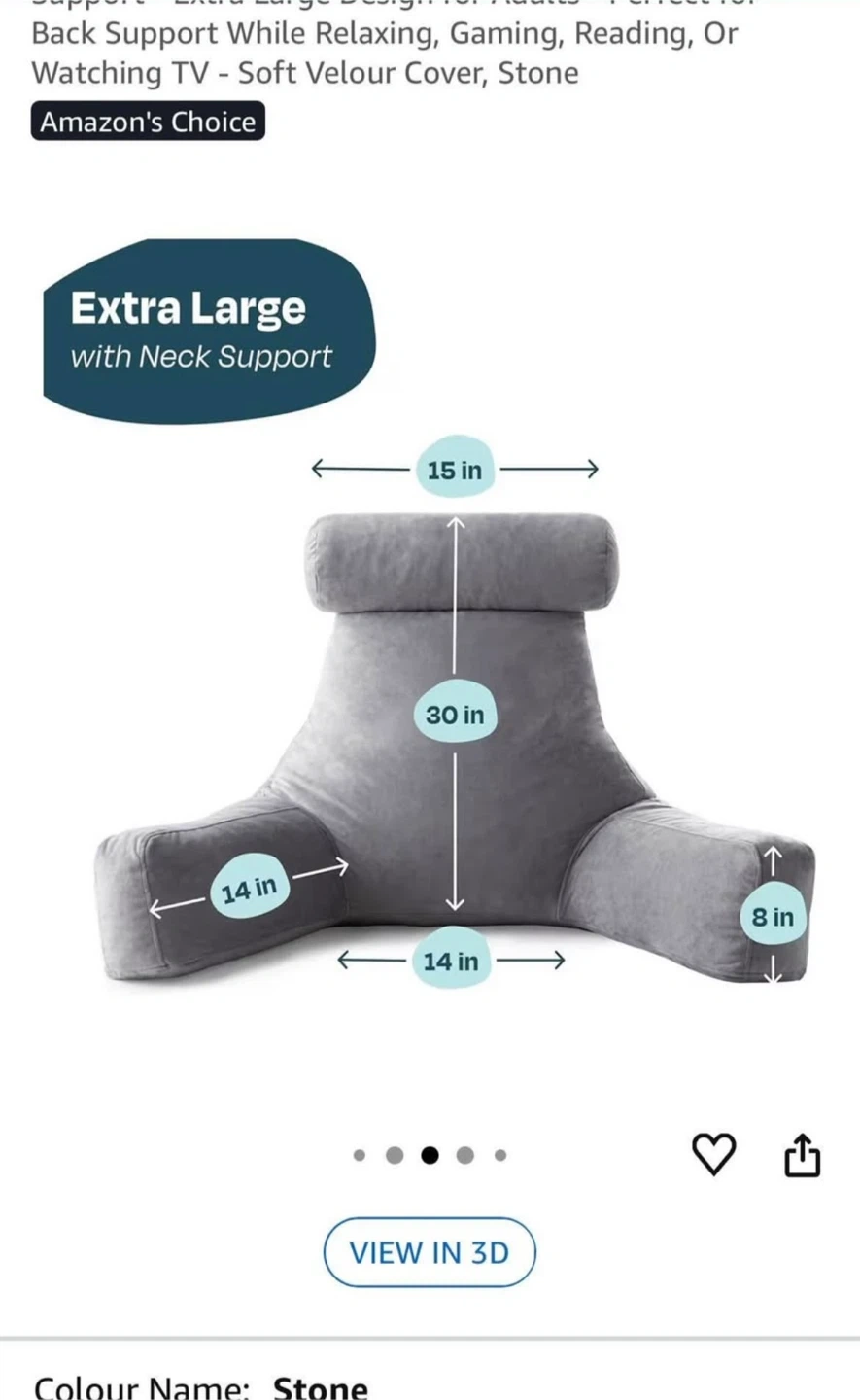 This Linenspa reading pillow offers extra-large support with a neck pillow and with stone colour. The pillow features measurements: see pictures.