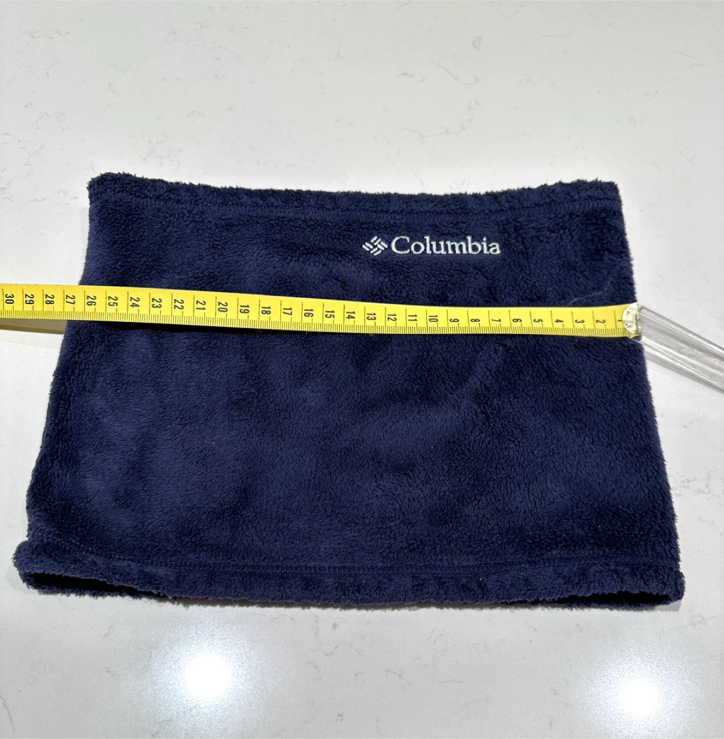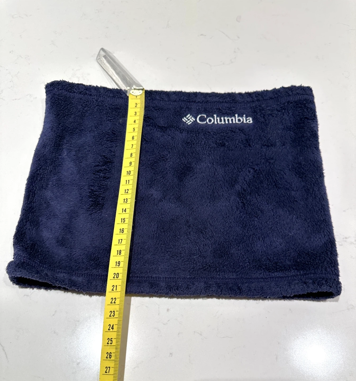 This navy blue Columbia neck warmer offers cozy warmth and a comfortable fit. Measuring about 11 inches tall and 15 inches around when laid flat, itâs designed as a womenâs one-size-fits-most accessoryâideal for hiking, skiing, or chilly days outdoors.