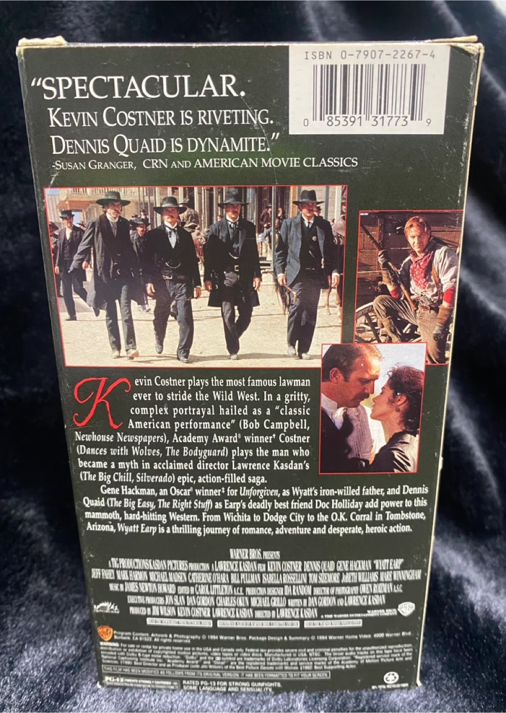 Wyatt Earp VHS Movie starring Kevin Costner and Dennis Quaid