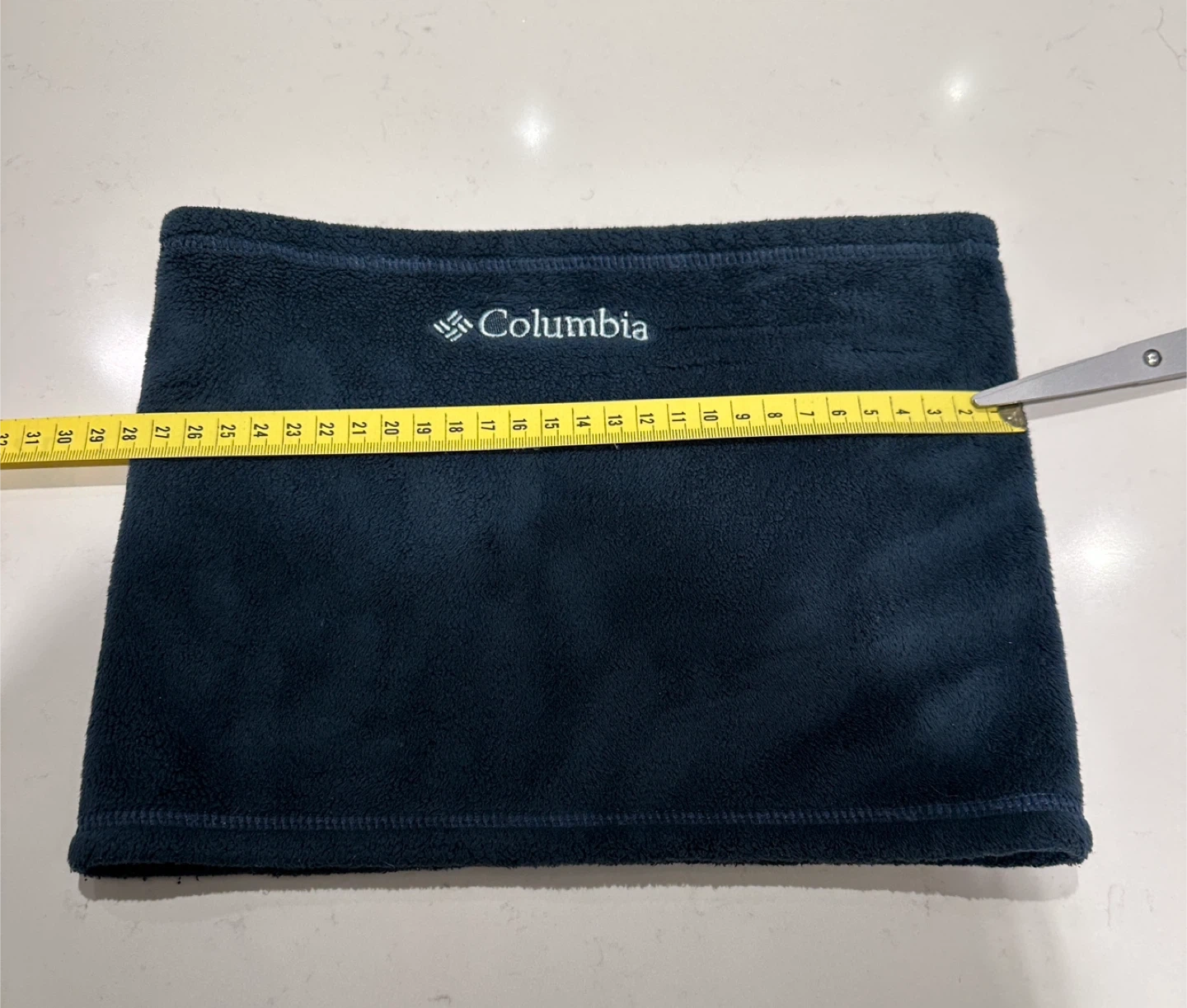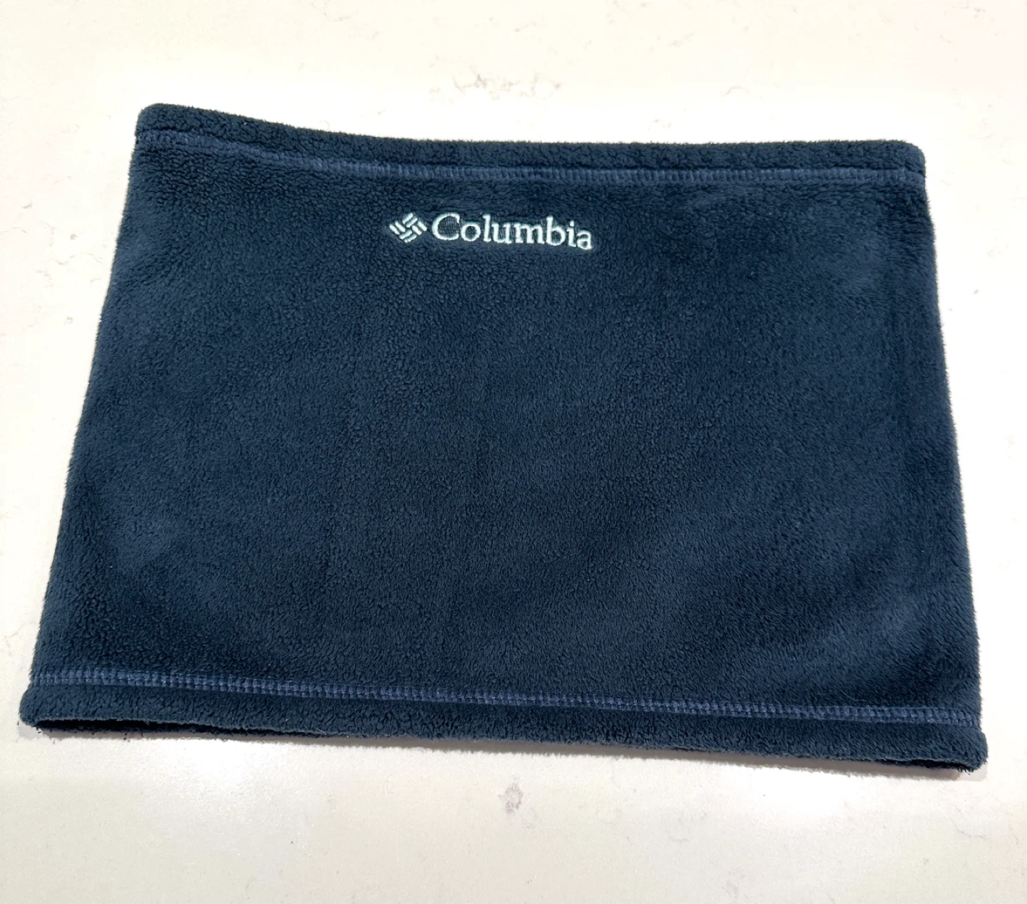 Unisex Columbia fleece neck warmer in navy blue. Soft, warm, and comfortable. Approx. Ideal for staying warm outdoors.
