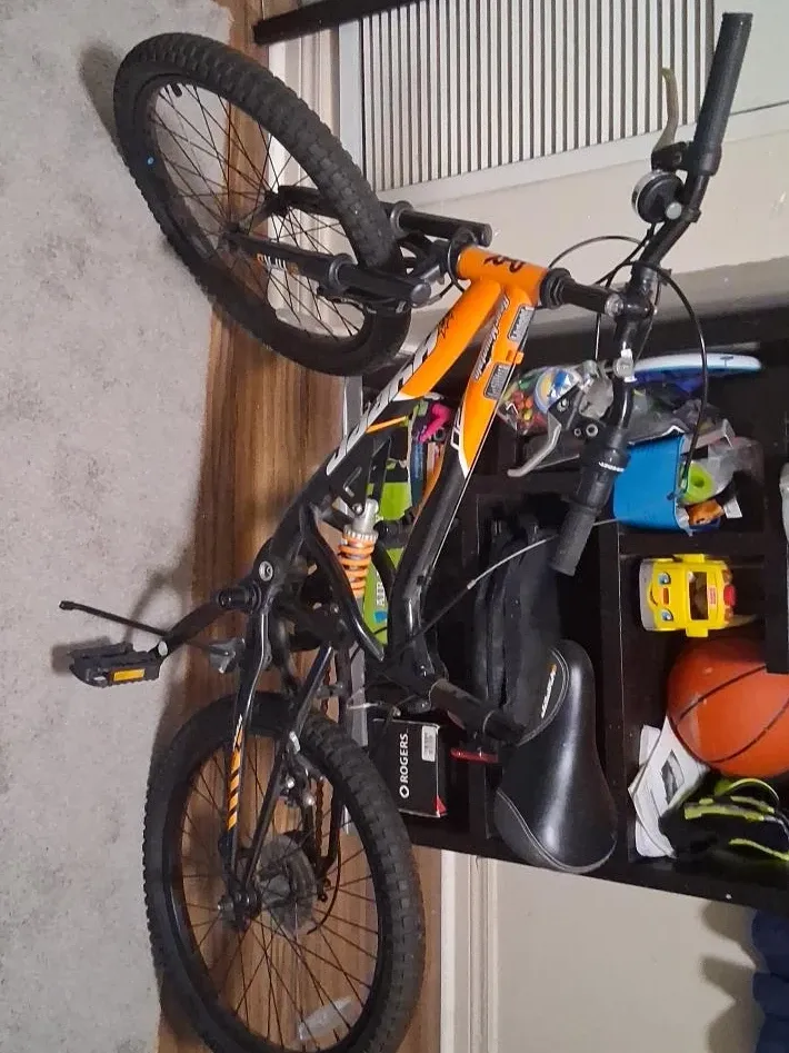 Buy & SellOrange Mountain BikeOrange Mountain Bike$72This is an orange mountain bike with a black seat and handlebars. It has front suspension. Perfect for riding on trails!ConditionOkayWHERE TO MEETMcDonald's 44 Bristol Rd EView MapSELLERGuerlineHurontario150 reviews0 chats·0 favorites·44 viewsSEND CHAT TO SELLERHi Guerline! I’m interested in your listing.Hi Guerline! I’m interested in your listing.Get the Karrot app to chatSign In to chat