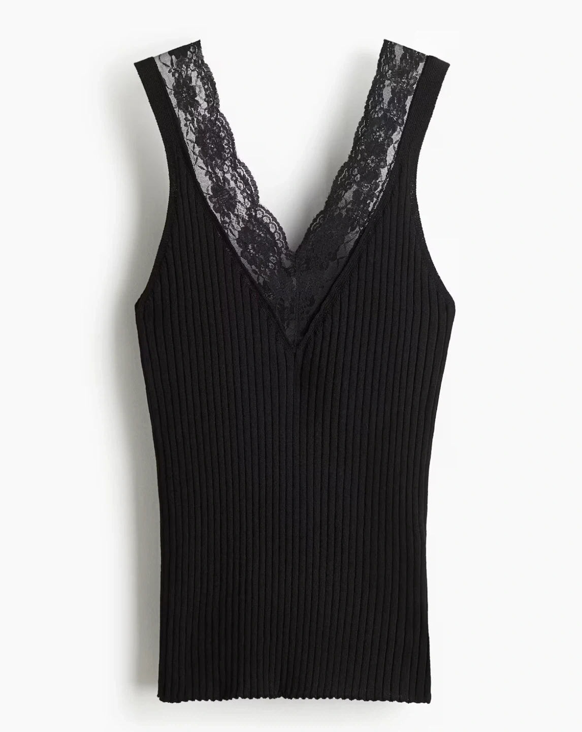 Buy & SellBlack ribbed tank top with lace trimBlack ribbed tank top with lace trim$7A black ribbed knit tank top with a V-neck and lace trim. It's sleeveless and has a fitted silhouette. This top is made from a stretchy material.ConditionNewSizeMediumWHERE TO MEETMillwoods SakawView MapSELLERverifiedElizabethSakaw711 review0 chats·0 favorites·15 viewsSEND CHAT TO SELLERHi Elizabeth! I’m interested in your listing.Hi Elizabeth! I’m interested in your listing.Get the Karrot app to chatSign In to chat