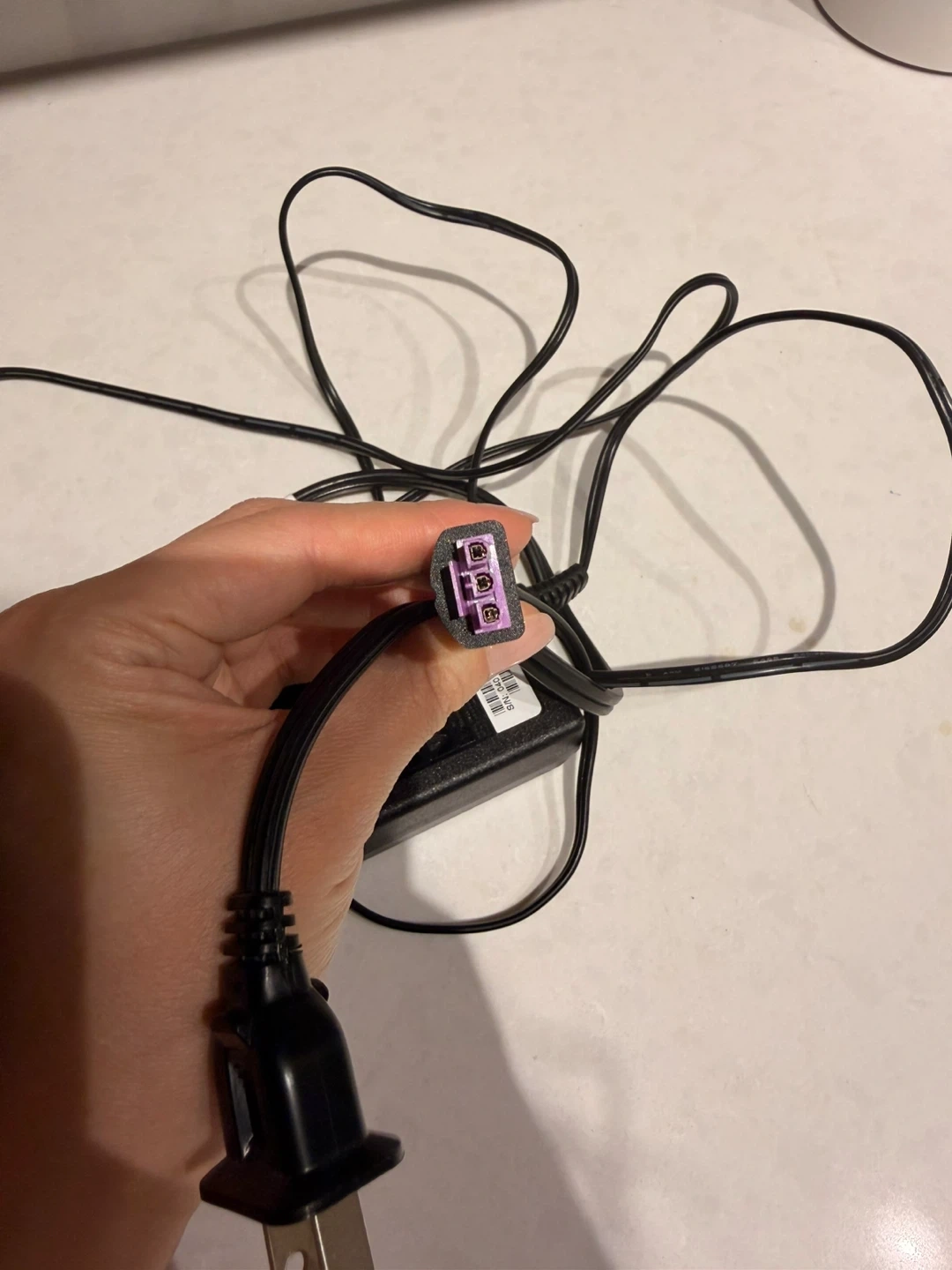This is an HP power adapter with model number 0957-2269. It has a standard North American plug. The connector tip is purple.