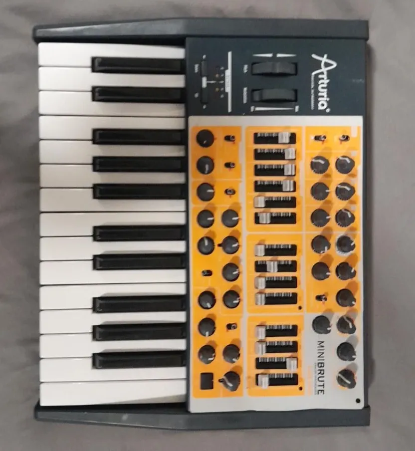 This is the Arturia MiniBrute analog synthesizer. It features a mini-keyboard and various knobs and sliders for sound shaping. It has multiple output jacks including audio, master out, and CV gate out. USB and MIDI ports are also present. The original manual is included and it's written really well, especially useful if your interested in learning about the history and application of subtractive synthesis. Also, included is a set of patch sheets to get you started with getting good bass, leads, and everything in between. Arturia recently released a VSTi plugin of this synth which has had an effect on raising the value of the original hardware version and so $400 buckaroos is the price my friends, please don't low ball me. Free delivery available if in Surrey and $20 extra if your in Vancouver or Coquitlam etc.... Thanks for looking!!