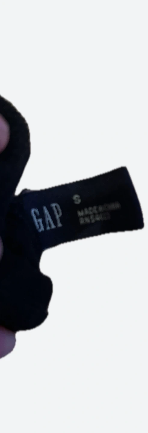 Warm fleece gloves from GAP. They're black with a size S tag. The shell is 100% polyester and the lining is also polyester. Great for keeping your kids hands cozy when it's cold out! Can fit also women’s small hand.