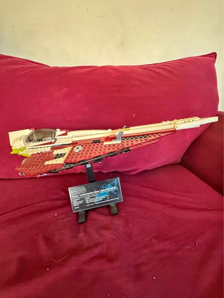 LEGO Star Wars Delta-7 Aethersprite-class Light Interceptor display model in excellent condition. Includes the original-style display stand and information plaque. Clean build with strong shelf presence — ideal for collectors. This matches the UCS / display version (Set 10215). Includes: Delta-7 Jedi Starfighter, Display stand with printed plaque. No box. Display model (not a play set). Pickup preferred. West Vancouver.