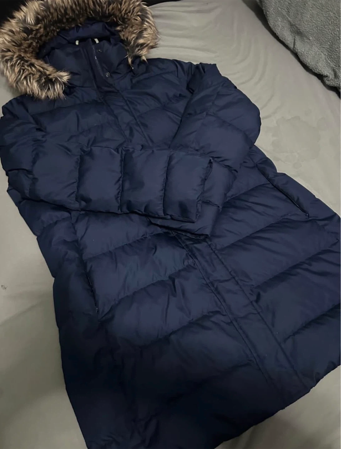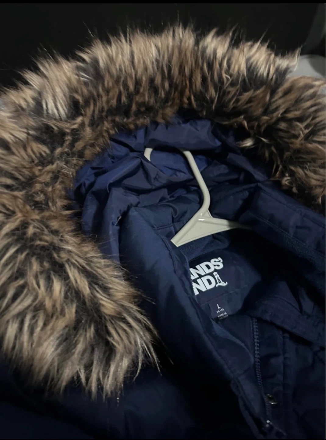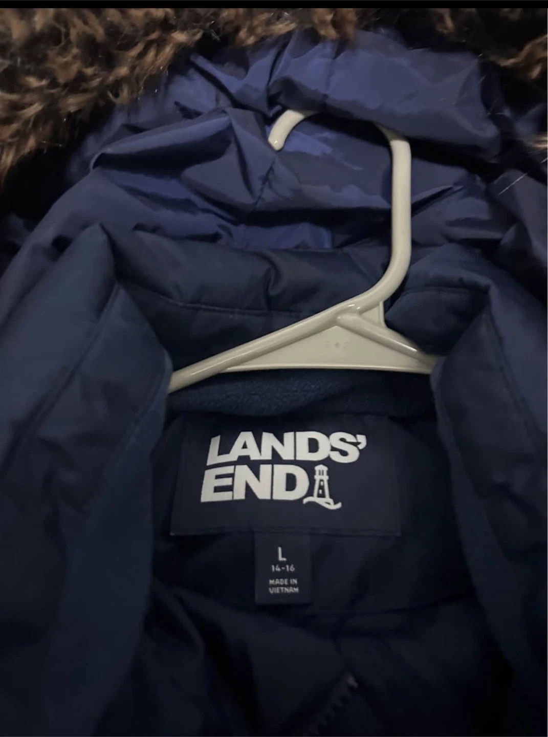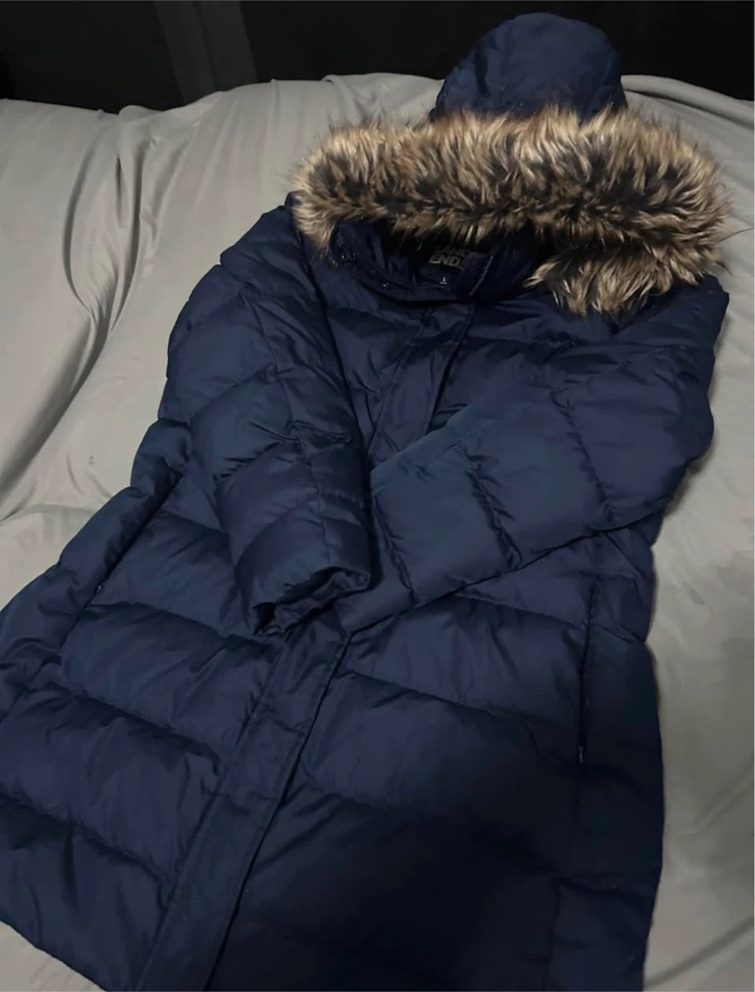 Lands' End Navy Puffer Coat with Fur Hood