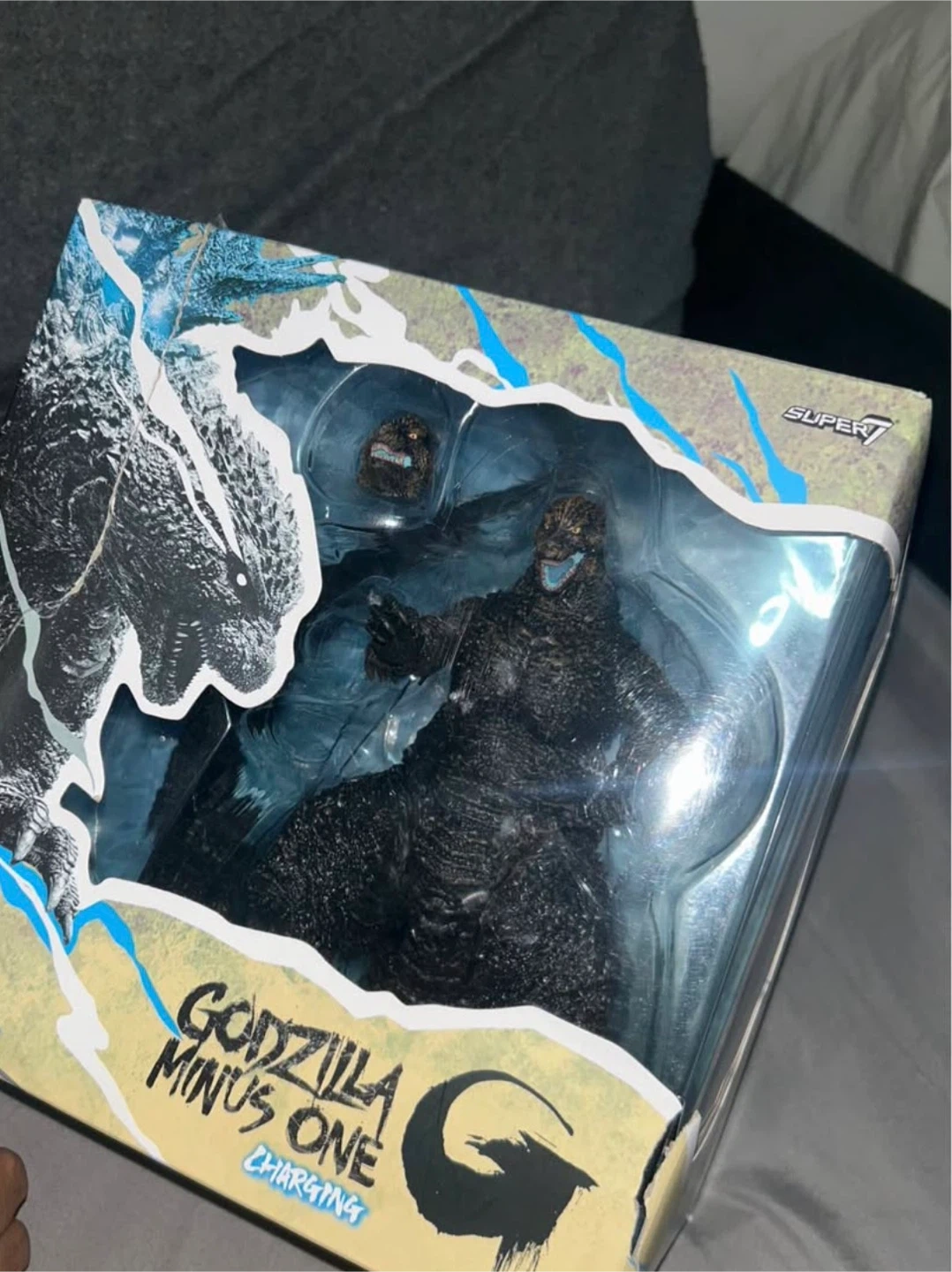 This is the Super7 Godzilla Minus One Charging action figure. It comes with an alternate head accessory. Great for any Godzilla collector!