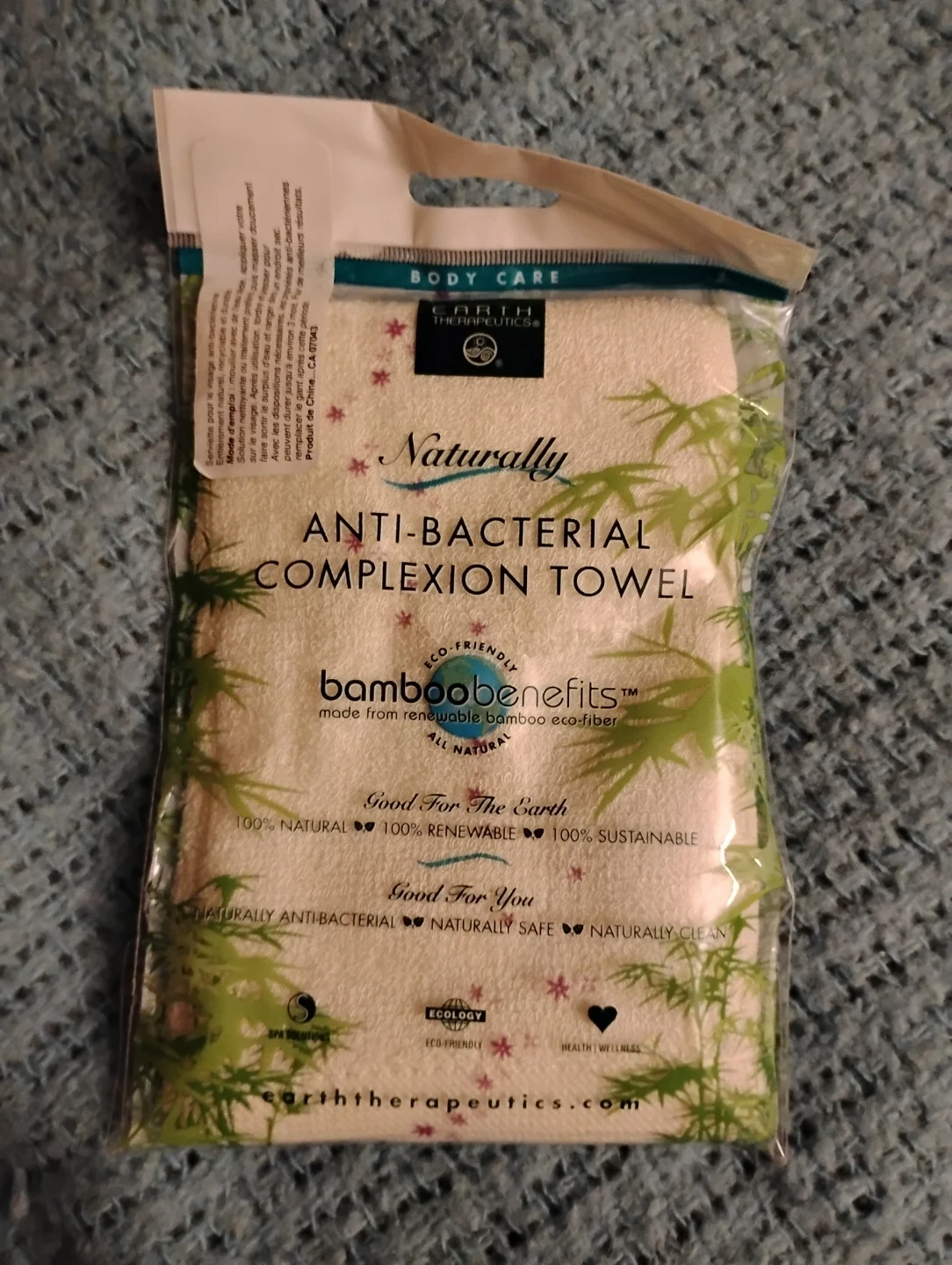NEW!! EARTH THERAPEUTICS ANTI-BACTERIAL COMPLEXION TOWEL. SEE PHOTOS, BEEN IN STORAGE FOR YEARS, NEVER OPENED.