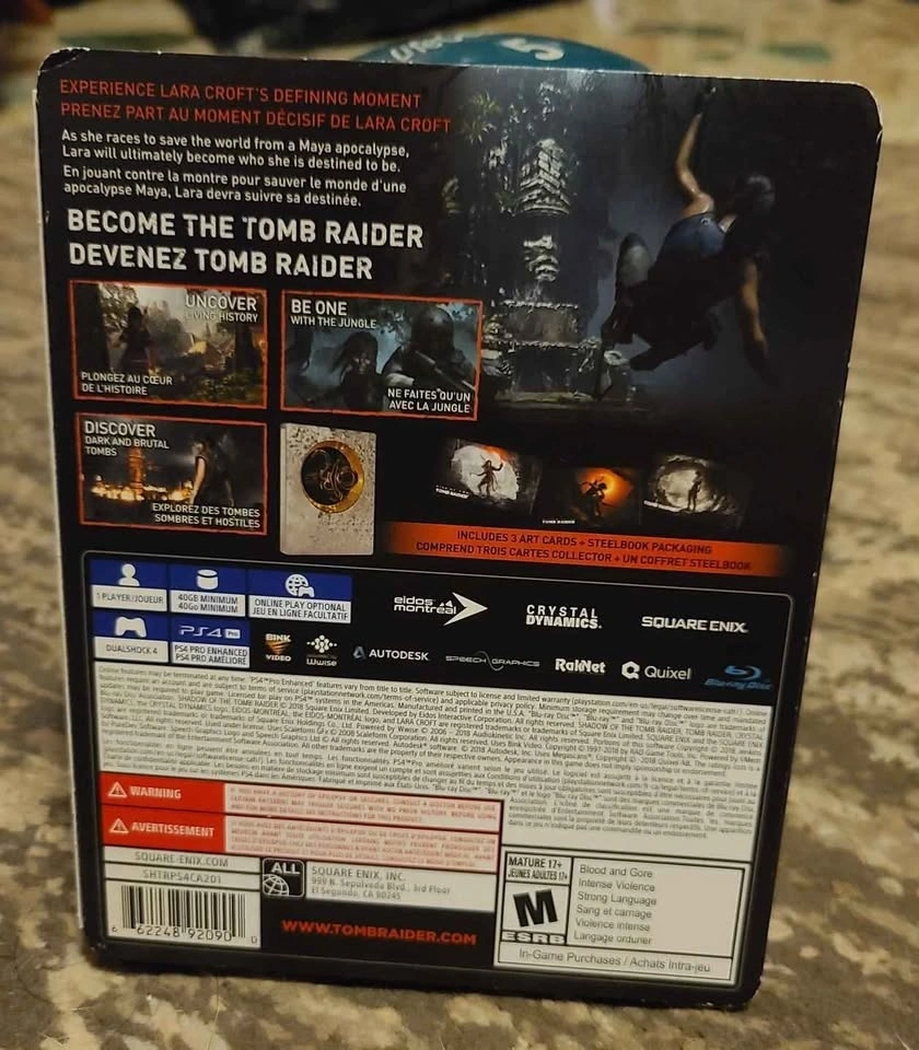 Shadow of the Tomb Raider Game, PS4, STEELBOOK
