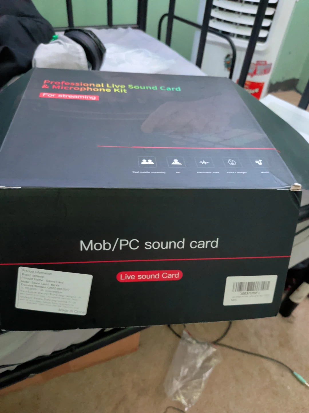 This is a Mob/PC sound card and microphone kit designed for live streaming. It supports dual mobile streaming, MC functions, electronic tune, voice changer, and music playback. Includes original box.