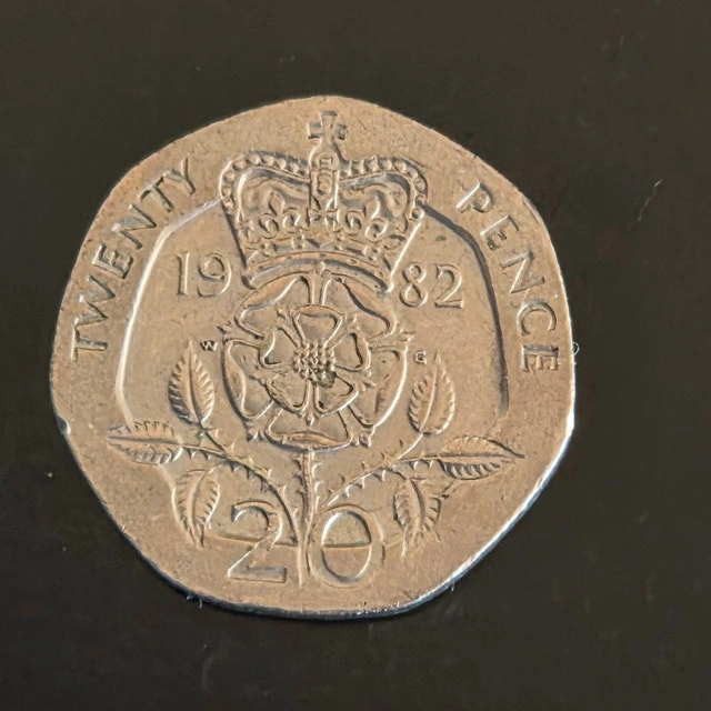 1982 UK 20 Pence Coin Queen Elizabeth II Tudor Rose