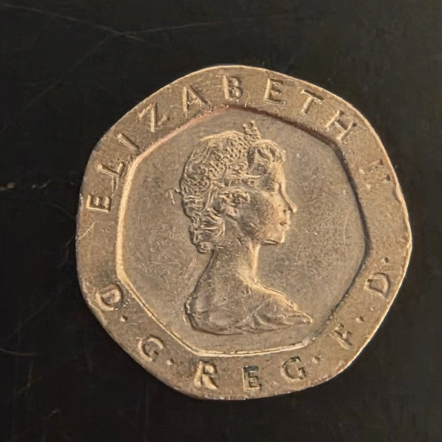For sale is a 1982 United Kingdom 20 Pence coin featuring Queen Elizabeth II and the Tudor Rose. This is a circulated, ungraded coin. The picture shows the actual coin you will receive. Cash and cashless payments are accepted. Owner is selling. Curbside pickup is available.