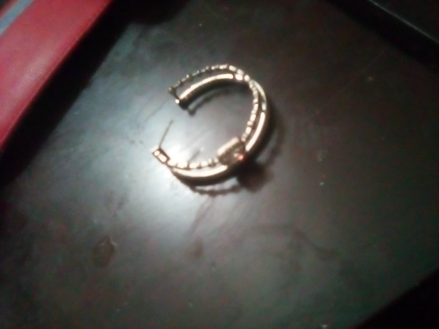 Gold hoop earrings with a textured design. Small clear stones accent the hoops. These earrings add a touch of sparkle to any outfit!