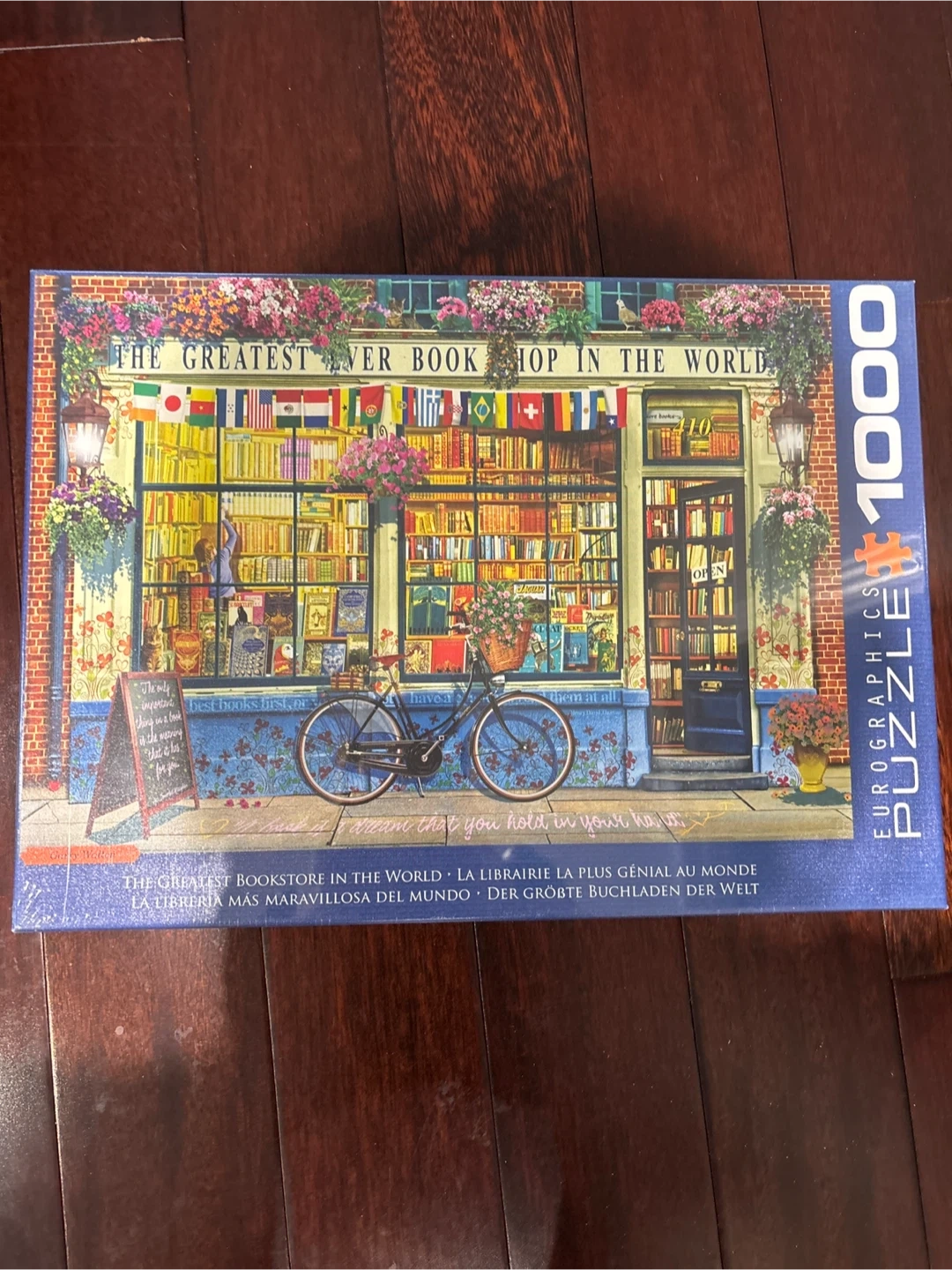 New unopened. Eurographics 1000 piece puzzle depicting "The Greatest Bookstore in the World". It's a fun challenge with a beautiful scene. This puzzle is great for book lovers and puzzle enthusiasts alike!