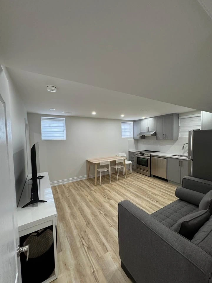 Private 1BR 1TB. Ideal for single professional or couple. Private entrance. Includes range, fridge, rangehood, dishwasher, dining table, sofa, TV, and bed (mattress not included). Shared washer and dryer. Open parking pad. Tenant will pay 30% of utilities.