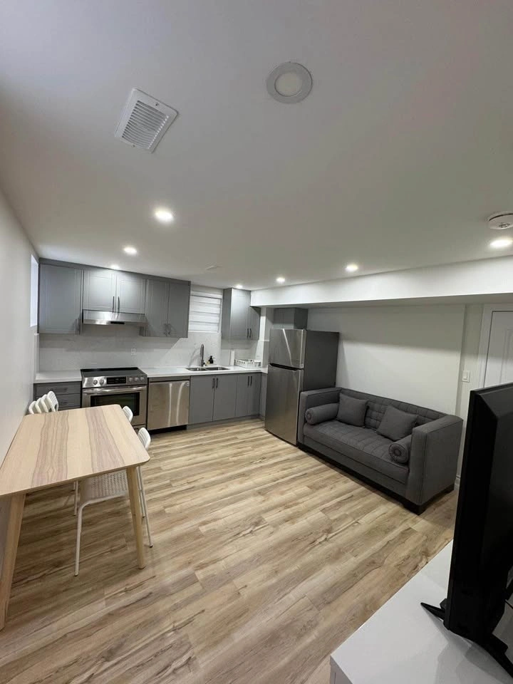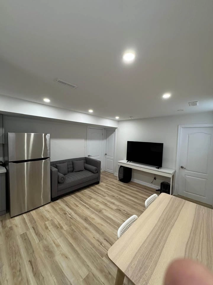 Private 1BR 1TB. Ideal for single professional or couple. Private entrance. Includes range, fridge, rangehood, dishwasher, dining table, sofa, TV, and bed (mattress not included). Shared washer and dryer. Open parking pad. Tenant will pay 30% of utilities.
