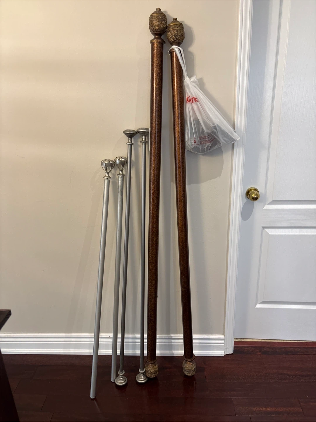 This set includes multiple decorative curtain rods in silver and bronze finishes. They feature ornate finials for a touch of elegance. These rods are great for adding a stylish accent to your windows!