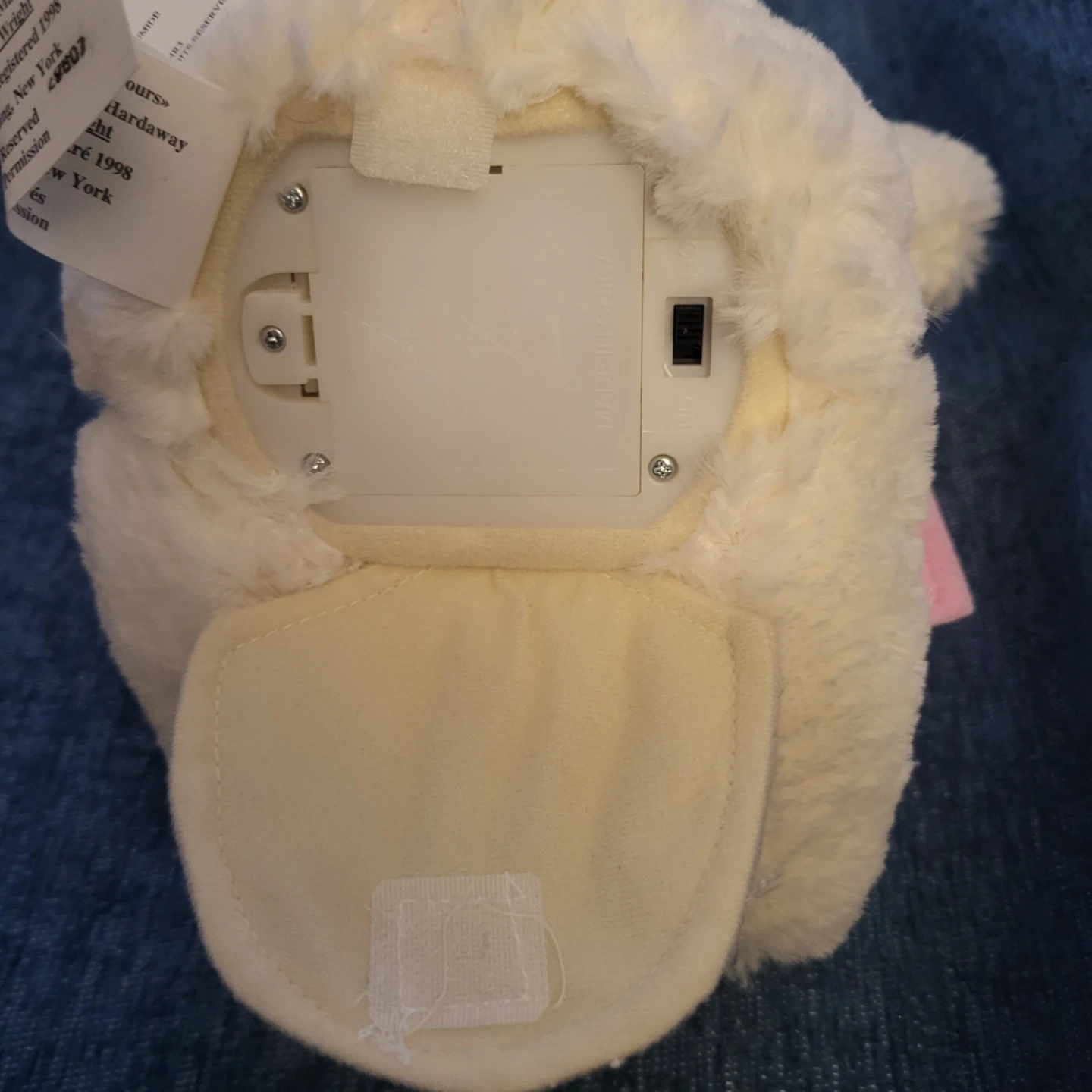 A plush teddy bear dressed for Valentine's Day, holding a red rose and a pink envelope. It's white with red accents on its paws. Squeeze its paw to hear it talk!