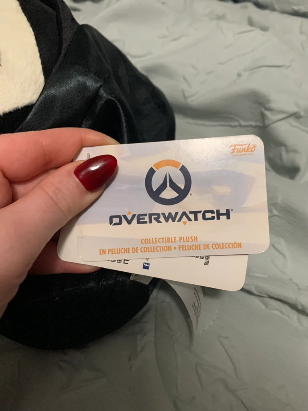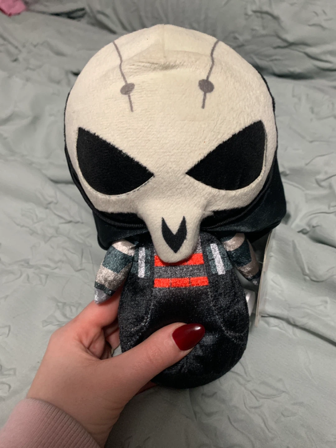 This is an Overwatch collectible plush. It's made of soft material and features detailed character design. This plush is a great addition for any Overwatch fan!