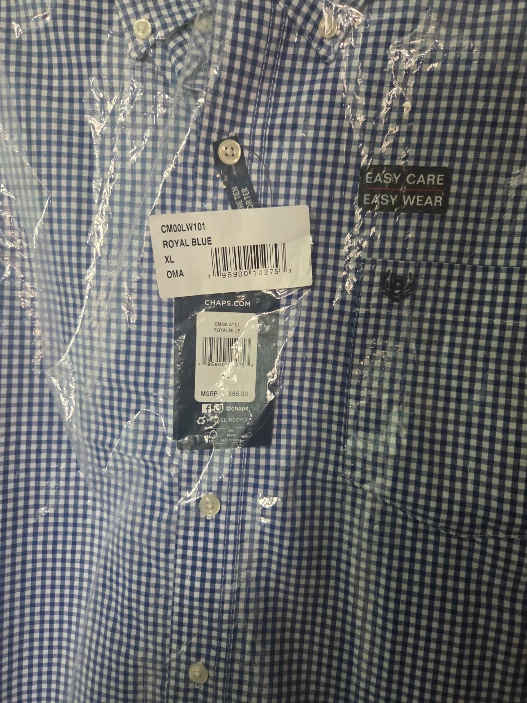 Chaps Mens XL Blue Checkered Button Down Long Sleeve. Stylish perfect for work or a causal outting. New with tags and new in packaging, retails for $65 as shown on tag.