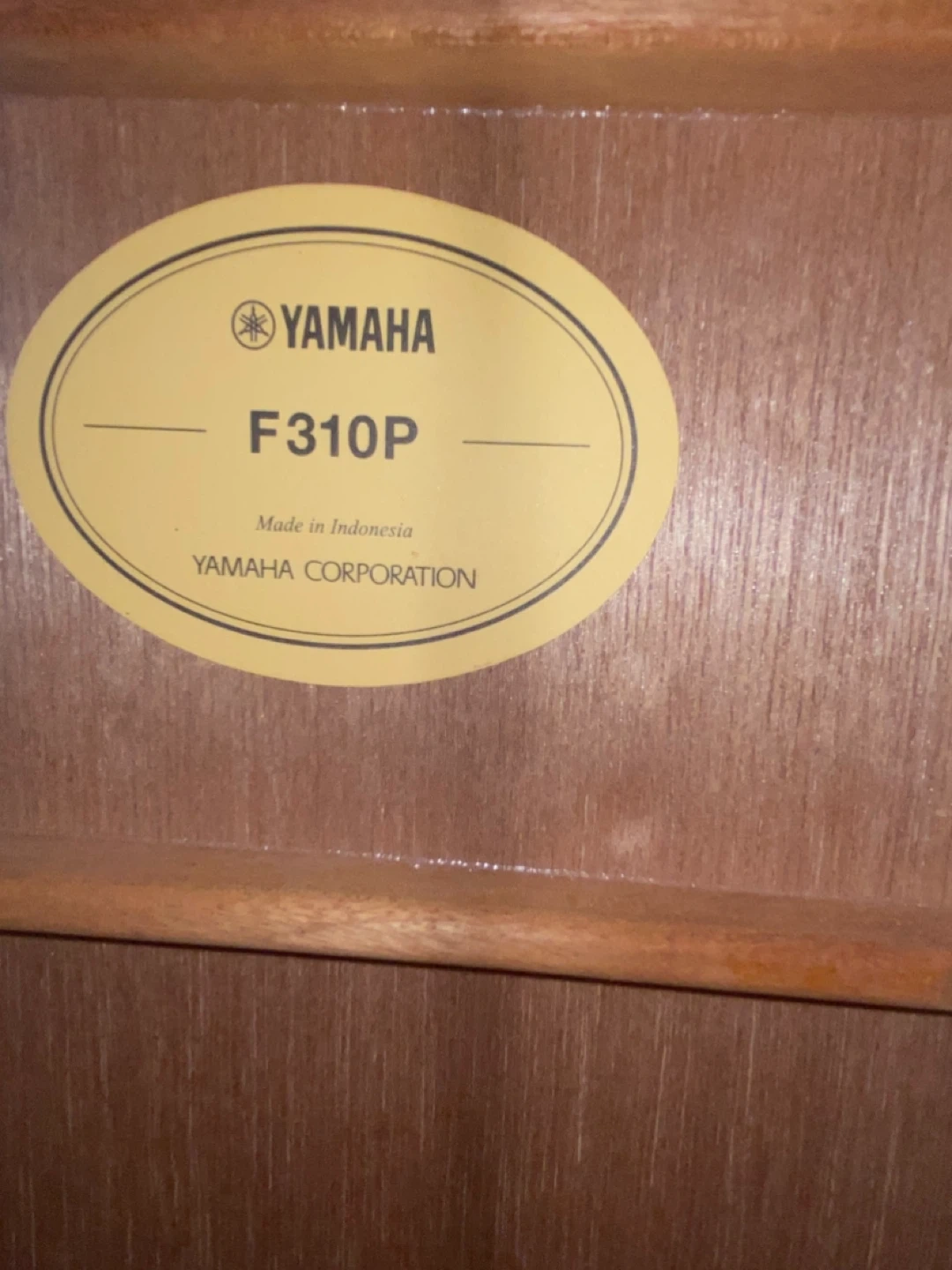 This is a Yamaha F310P acoustic guitar. It's made in Indonesia. This guitar is suitable for beginners learning to play. Broken small e string