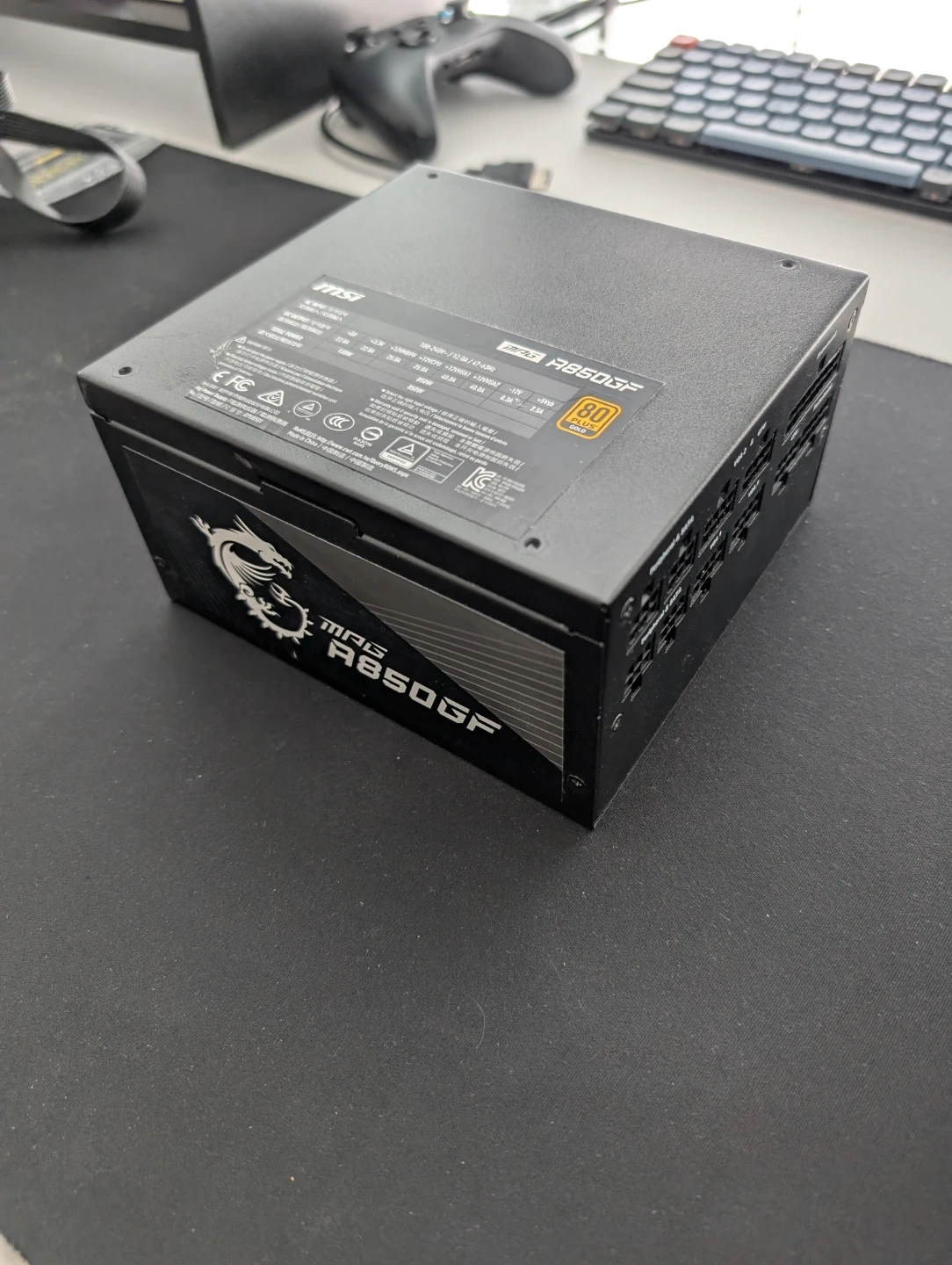 MSI MPG A850GF 850 Watt 80 Plus Gold power supply. It's a fully modular ATX power supply. Includes 1 ATX Cable, 1 EPS Cable, 1 PCie 8-pin to 6+2-pin Cable.