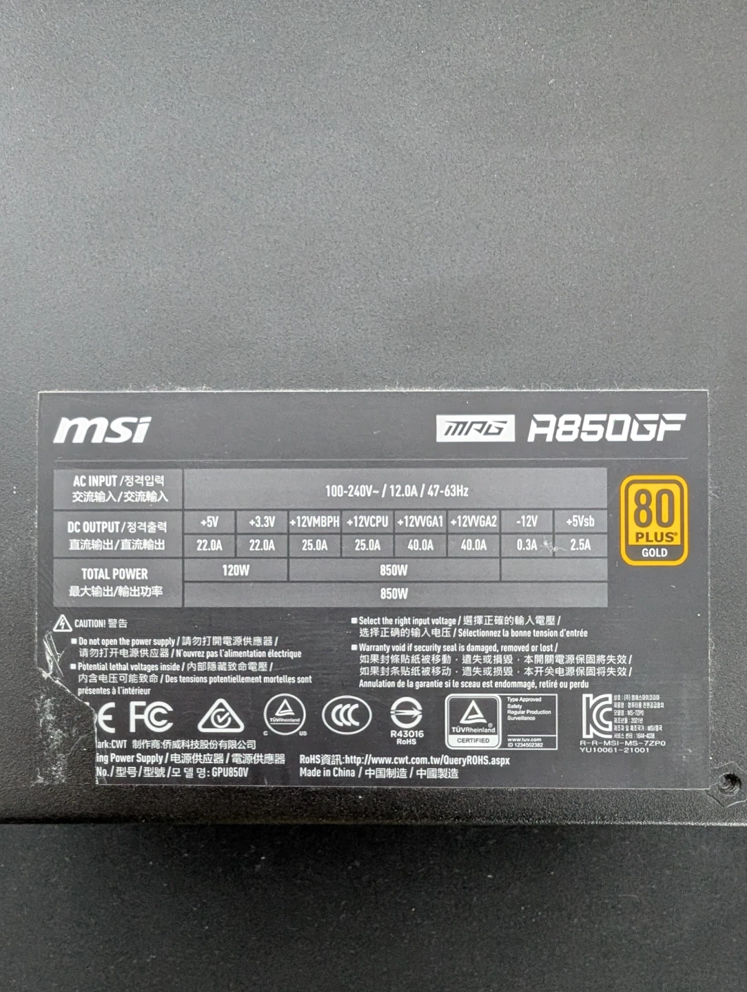 MSI MPG A850GF 850W Gold Power Supply