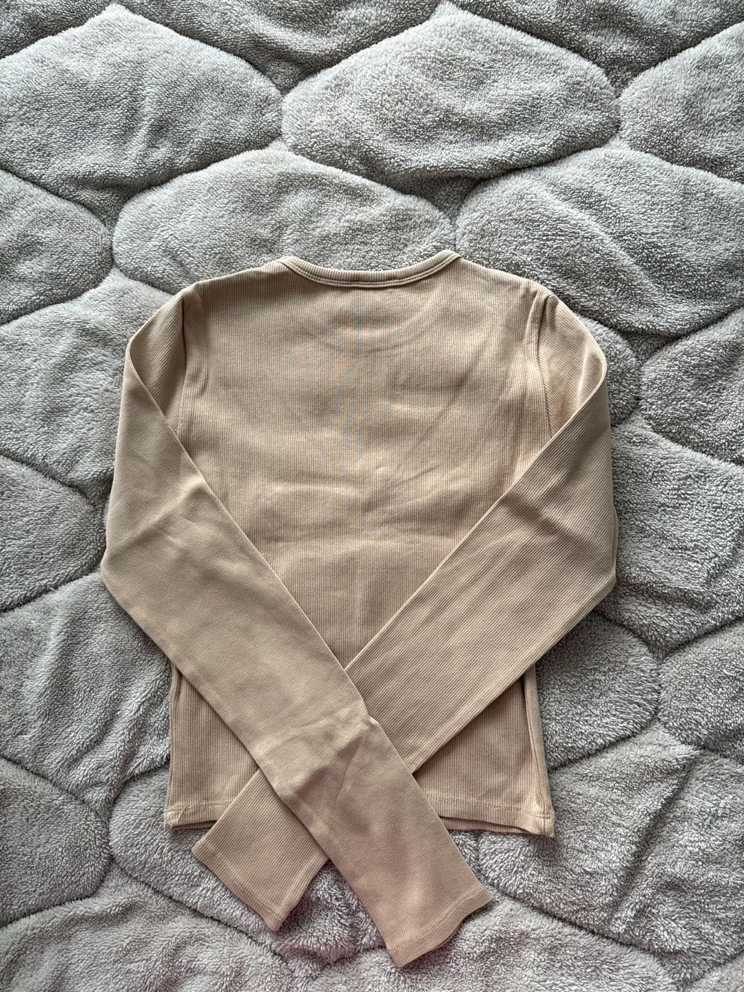 This is a beige ribbed long sleeve top from Bershka. It's a size small with a crew neck. Made with a comfortable stretchy material, bought from germany.