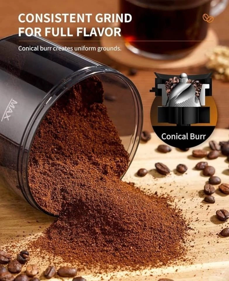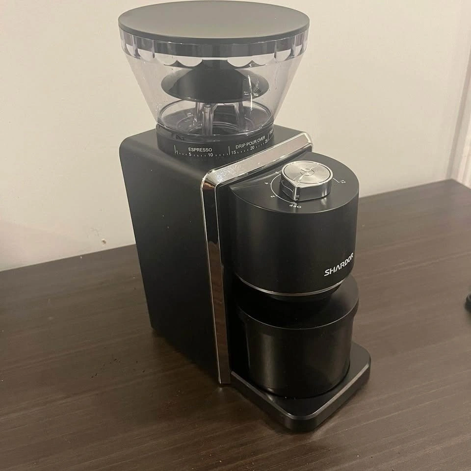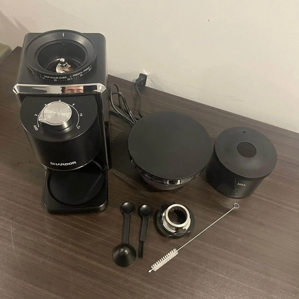 Used like new. SHARDOR Conical Burr Coffee Grinder with 35 Precise Grind Setting for 2-12 Cup. Choose from 35 different grind selections from fine for espresso to coarse for french press. The anti-static technology makes the ground coffee chamber mess-free. Stainless steel conical burr coffee grinder creates uniform grounds for optimal flavor extraction. Customizable quantity settings to grind the exact quantity you need. Features a built-in brush, removable upper burr, hopper, and chamber for easy cleaning.