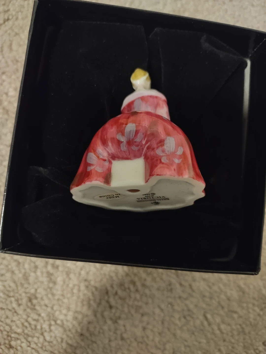 This is a Royal Doulton Victoria figurine from the Miniature Ladies collection. It's made of porcelain and comes in its original box.