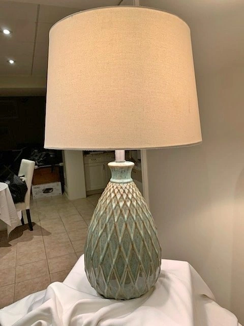 Stunning Coastal Vibe Lamp with beautiful textured weave. Height 27", Circumference 25". Pristine Condition. This Uttermost Lamp is well over $250.00 retail. Smoke Free - Pet Free Home. Located Richmond Hill (Bathurst and King Rd).