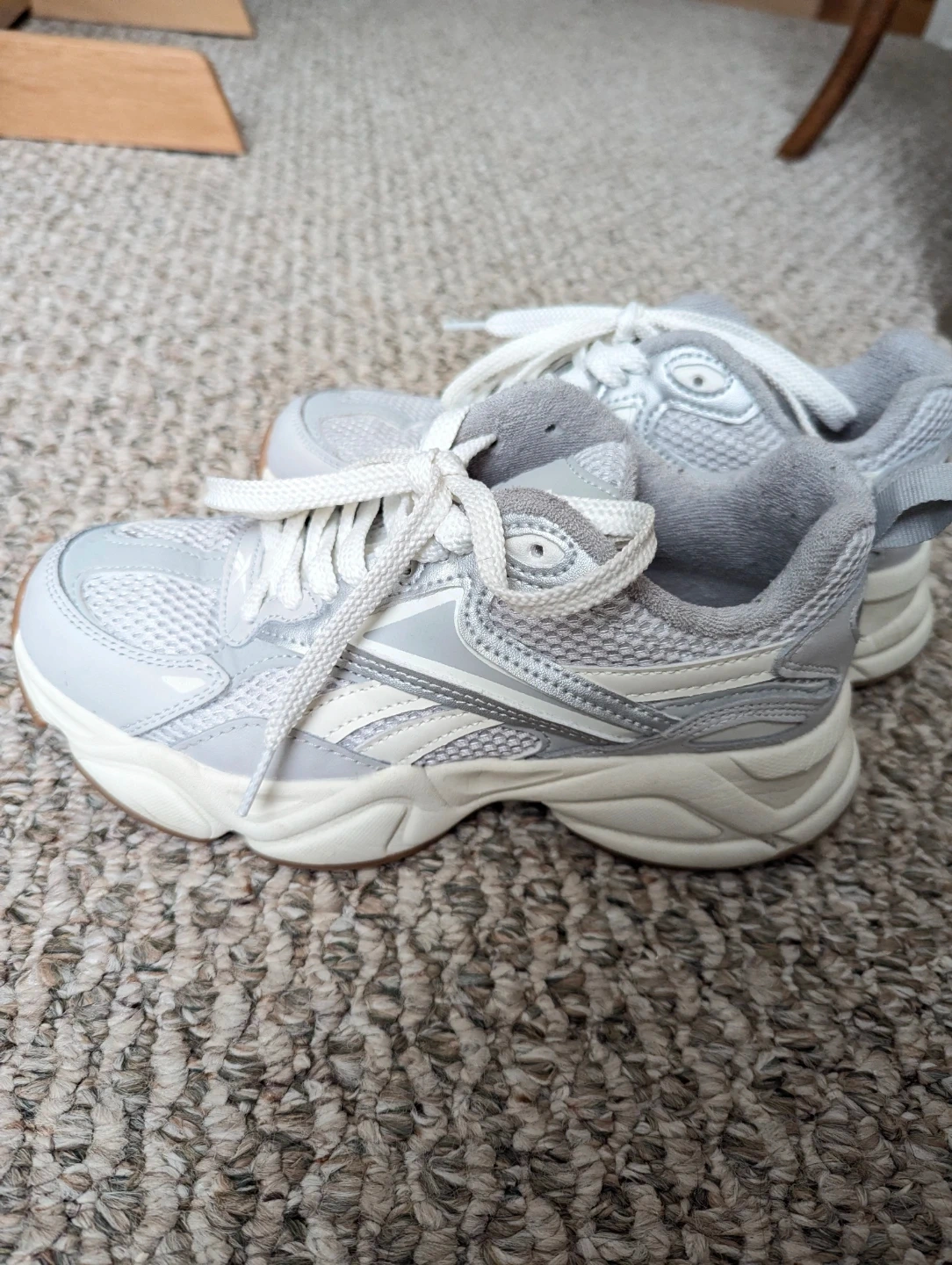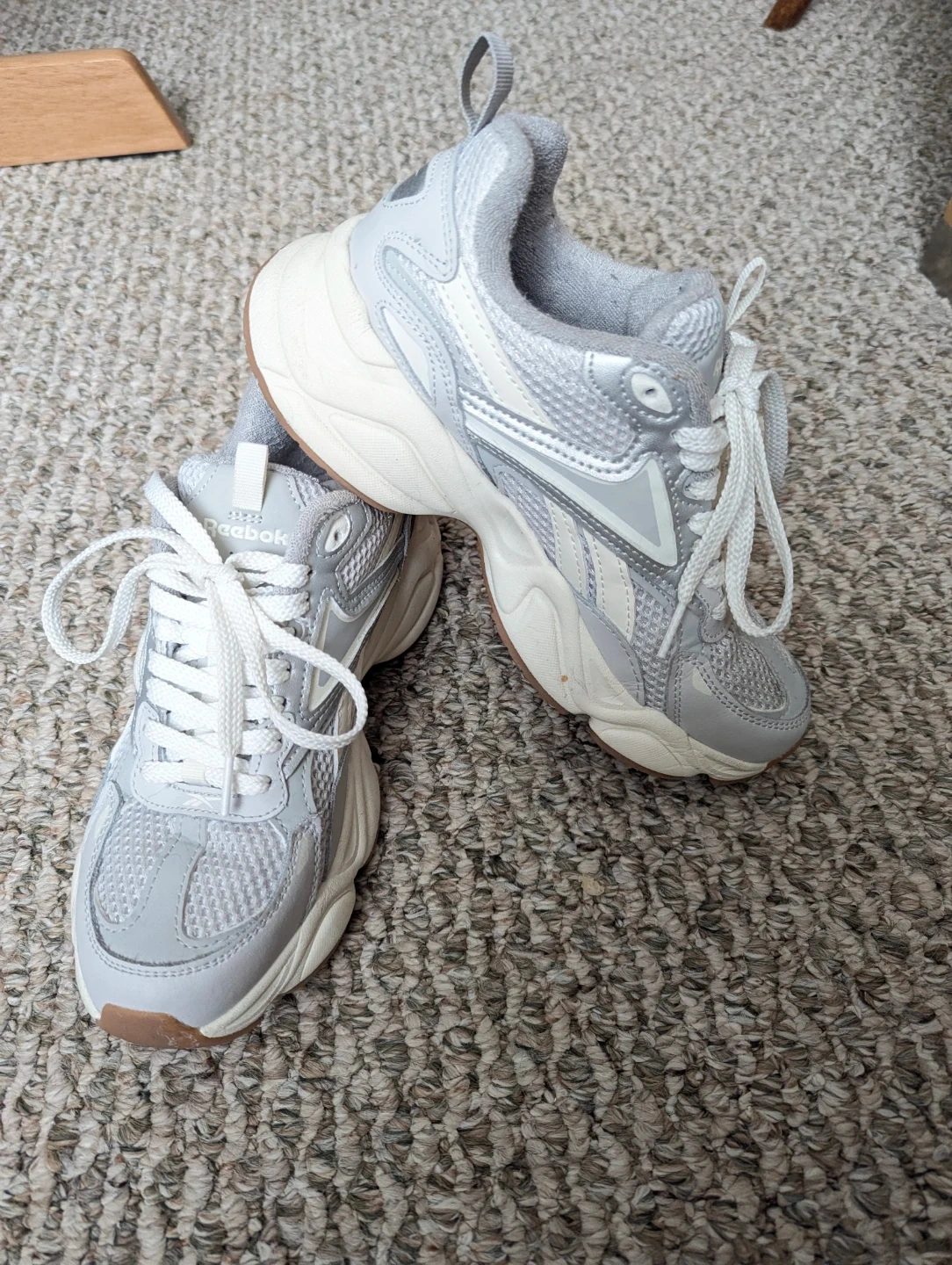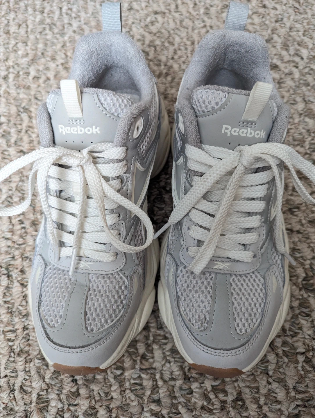 Reebok women's running shoes in a light grey colour. These sneakers feature a lace-up closure and a durable rubber sole. They're comfortable for everyday wear.