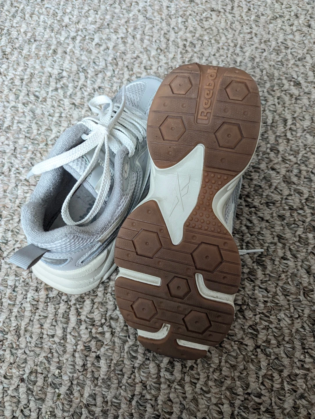 Reebok women's running shoes in a light grey colour. These sneakers feature a lace-up closure and a durable rubber sole. They're comfortable for everyday wear.